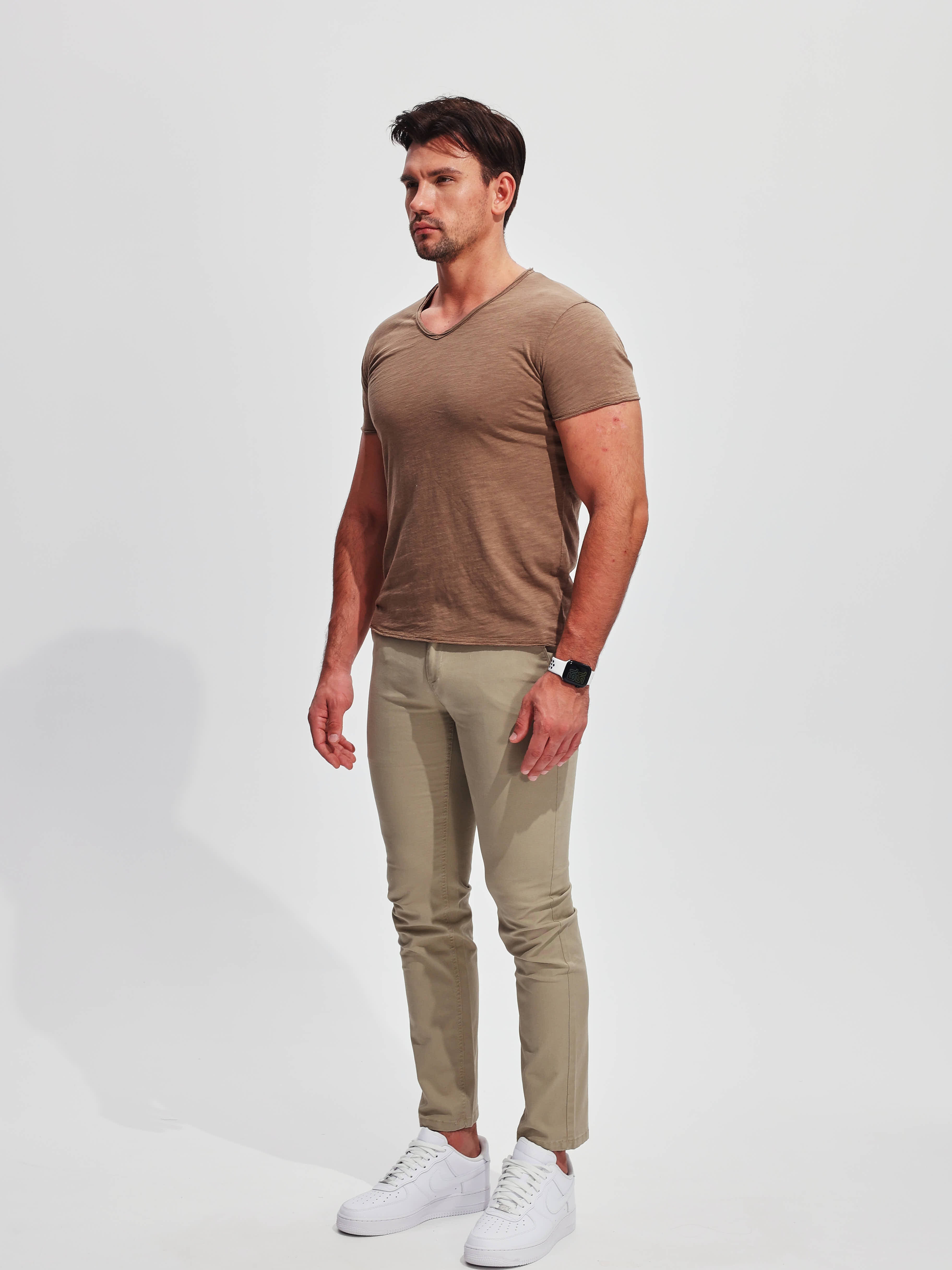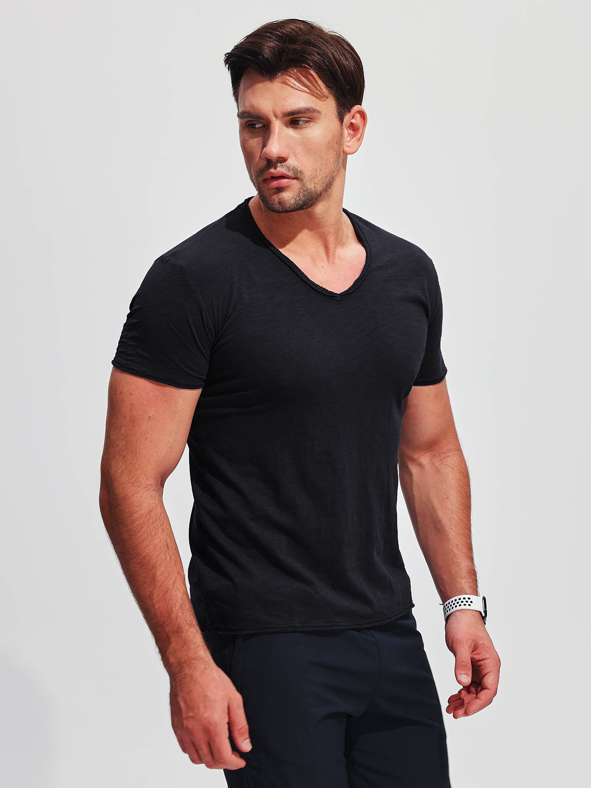 La nostra t-shirt Slub con scollo a V trasforma un capo essenziale quotidiano in un basic artistico ed elevato. Un jersey slub con texture sottilmente irregolari crea dimensione nel tessuto morbido e di peso medio. Il risultato è una t-shirt con profondità visiva e ricche strisce tonali - uno stile casual reso interessante. Una vestibilità rilassata ma sagomata e uno scollo a V lusinghiero uniscono comfort e raffinatezza. Ideale da indossare sotto giacche e camicie o da sola con jeans per un look minimalista senza sforzo. Questa t-shirt slub unica porta uno stile sobrio in ogni guardaroba come un capo base abilmente realizzato con un carattere tutto suo. Che tu sia attratto dalle sue strisce tinto capo testurizzate, apprezzi la sua lavorazione o semplicemente cerchi un'alternativa alla t-shirt comoda con un tocco di stile duraturo - la nostra t-shirt Slub con scollo a V è fatta per essere vissuta e apprezzata per le stagioni a venire. Basic, ma migliore.