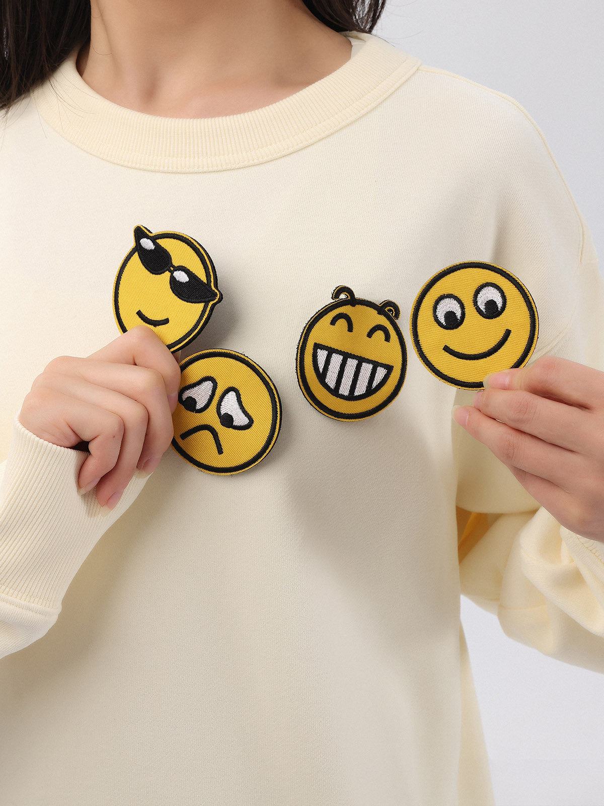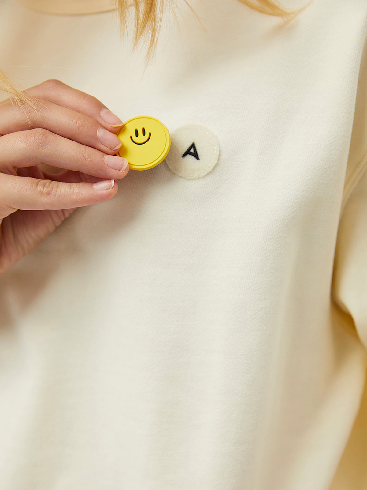 - Design: Detachable smiley hook & loop fastener