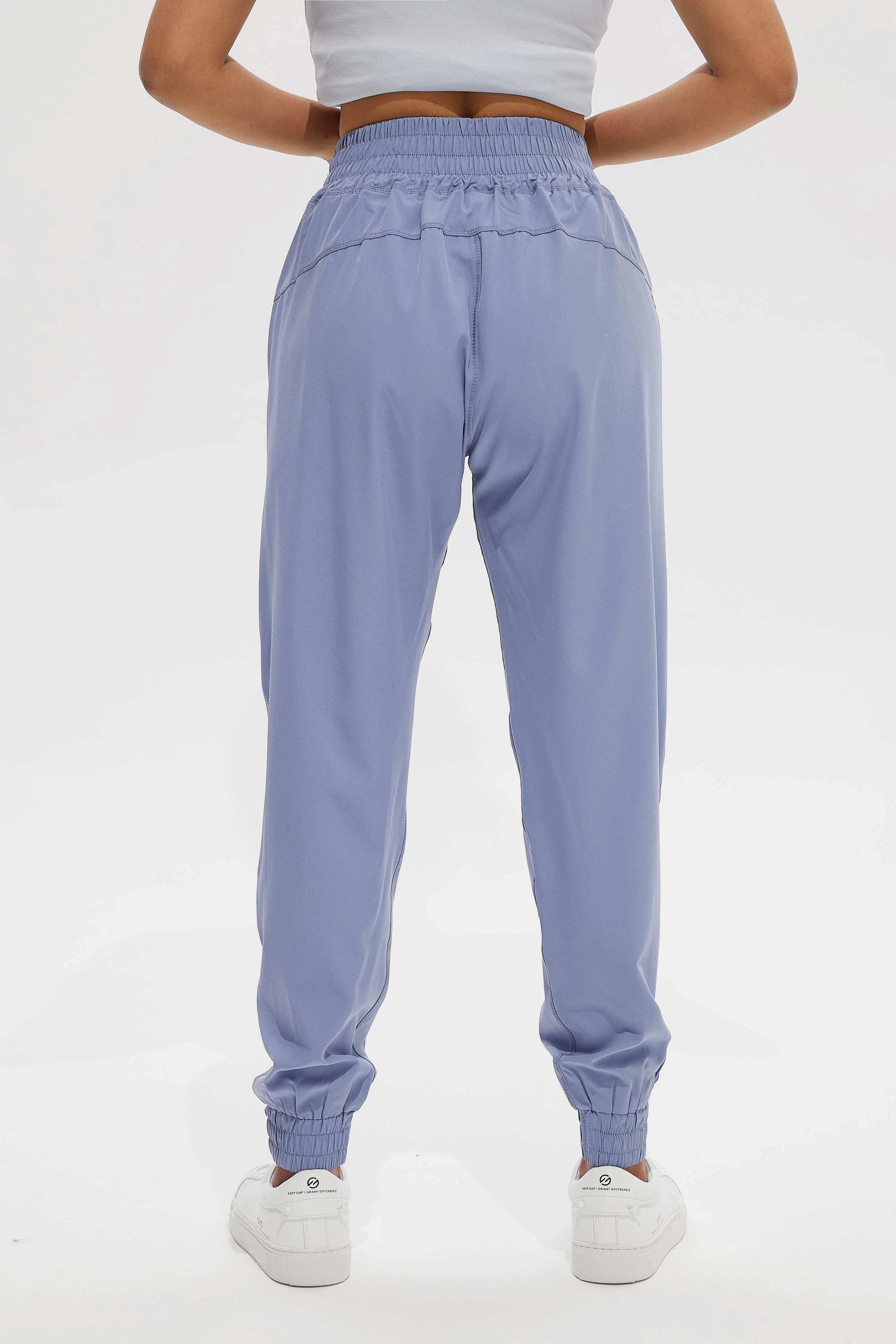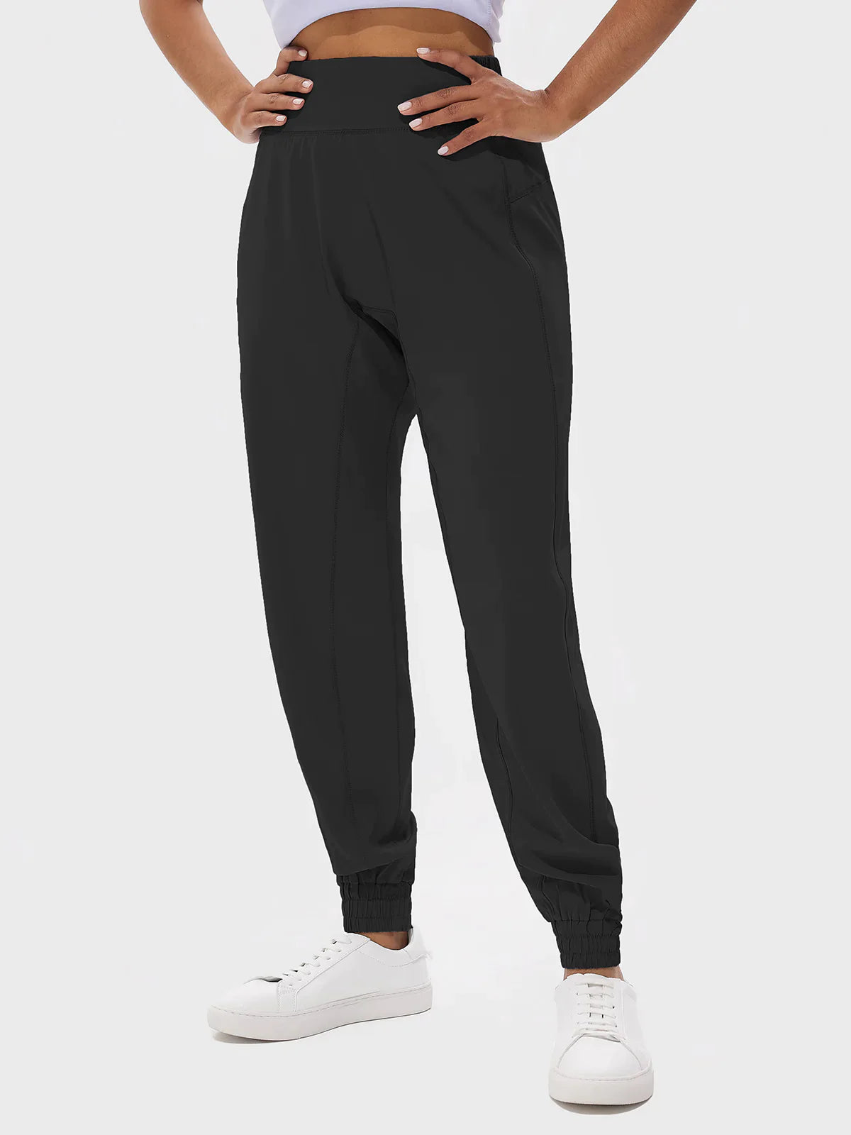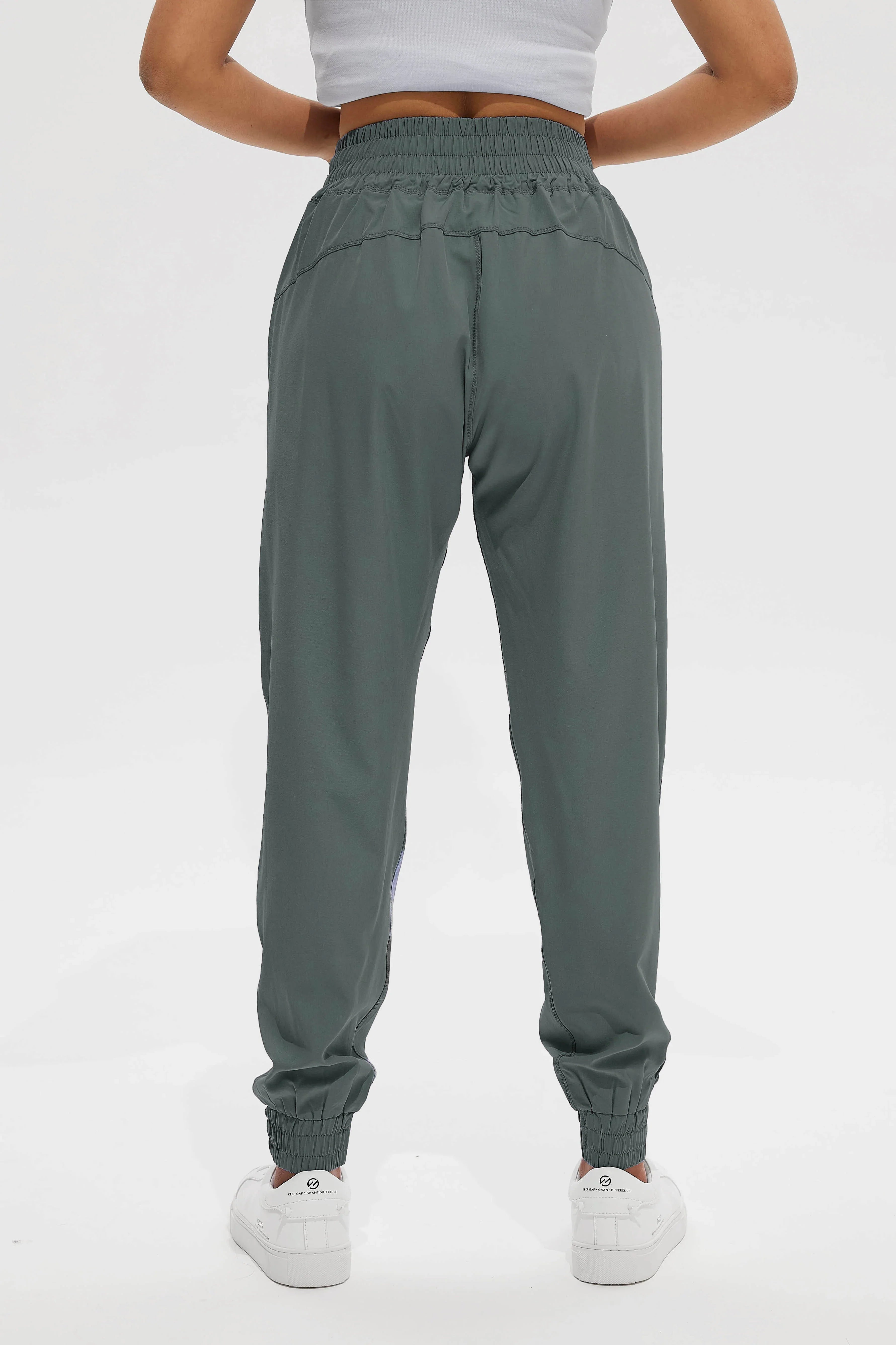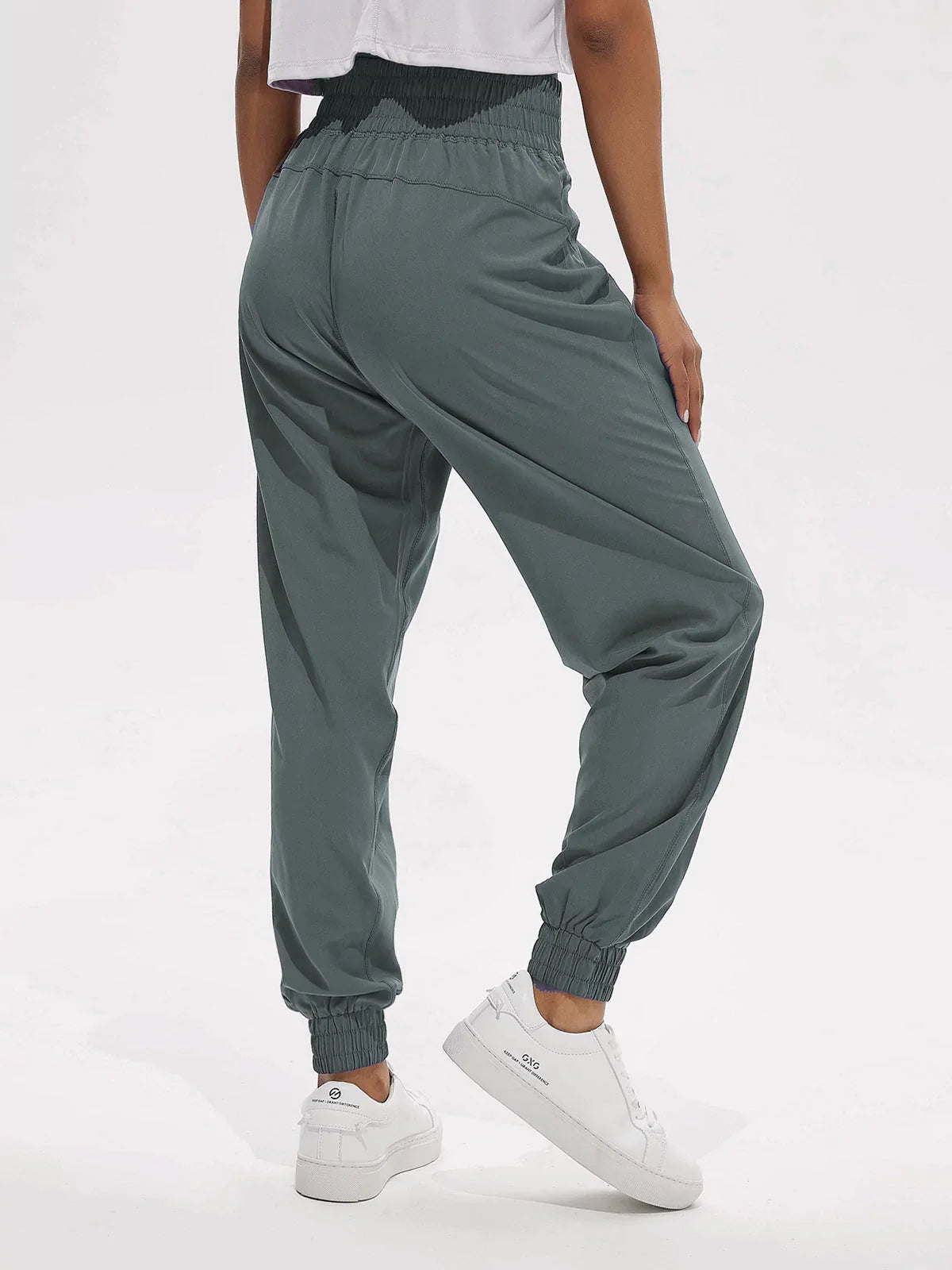 Questi sono jogger a vita alta a asciugatura rapida con una fascia elastica. Sono realizzati con un tessuto elastico e traspirante. Assicurati di sentirti comodo durante tutto l'allenamento e per tutta la giornata.
