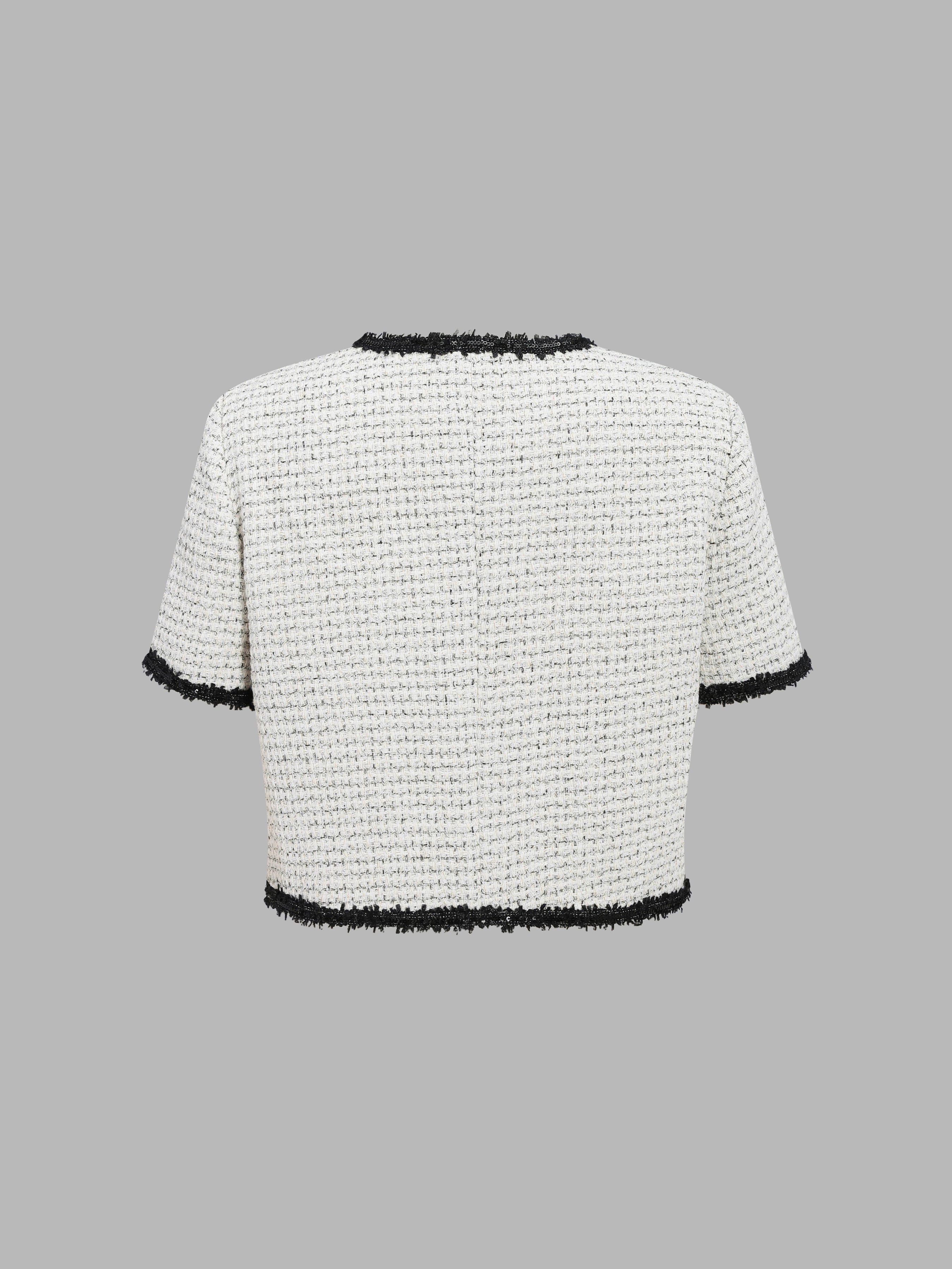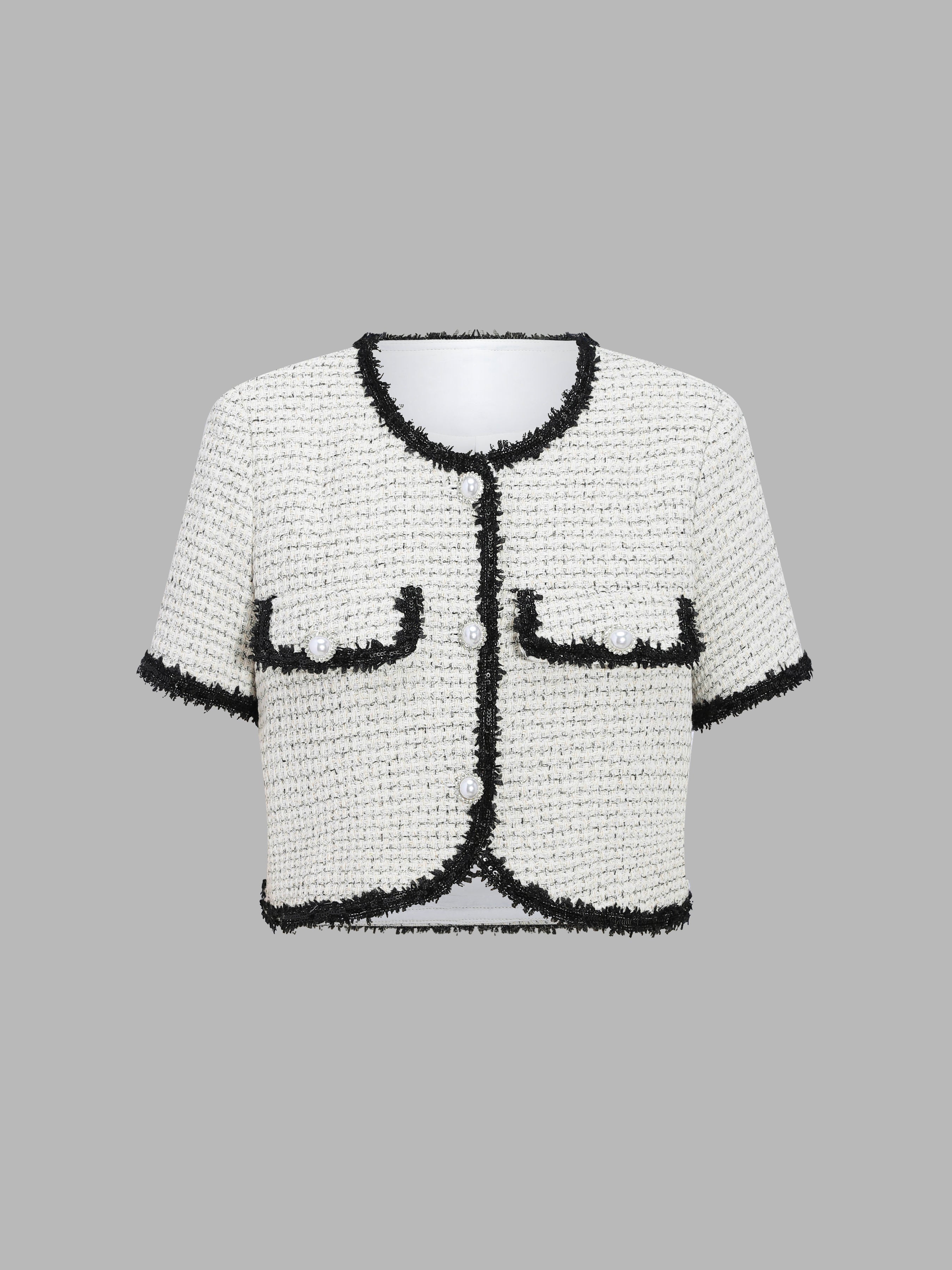Colorblock Tweed Jacket with Lace Trim - Ahaselected