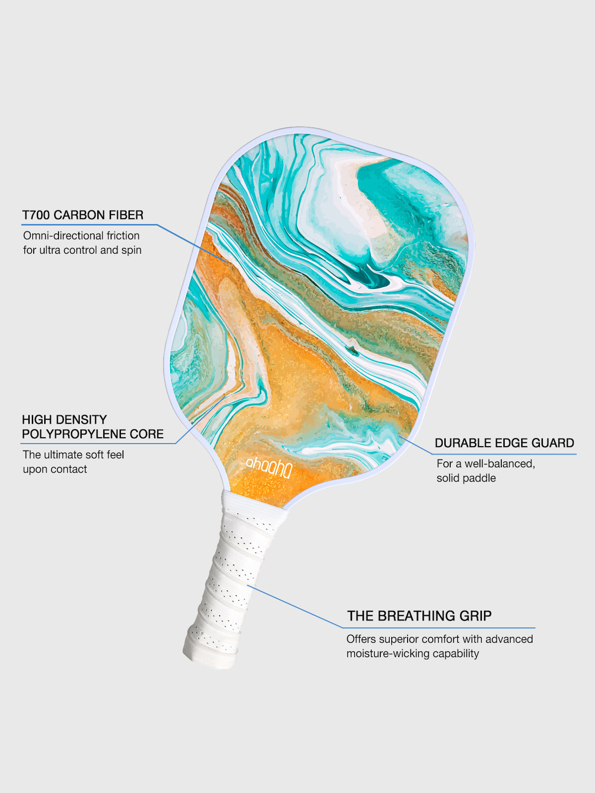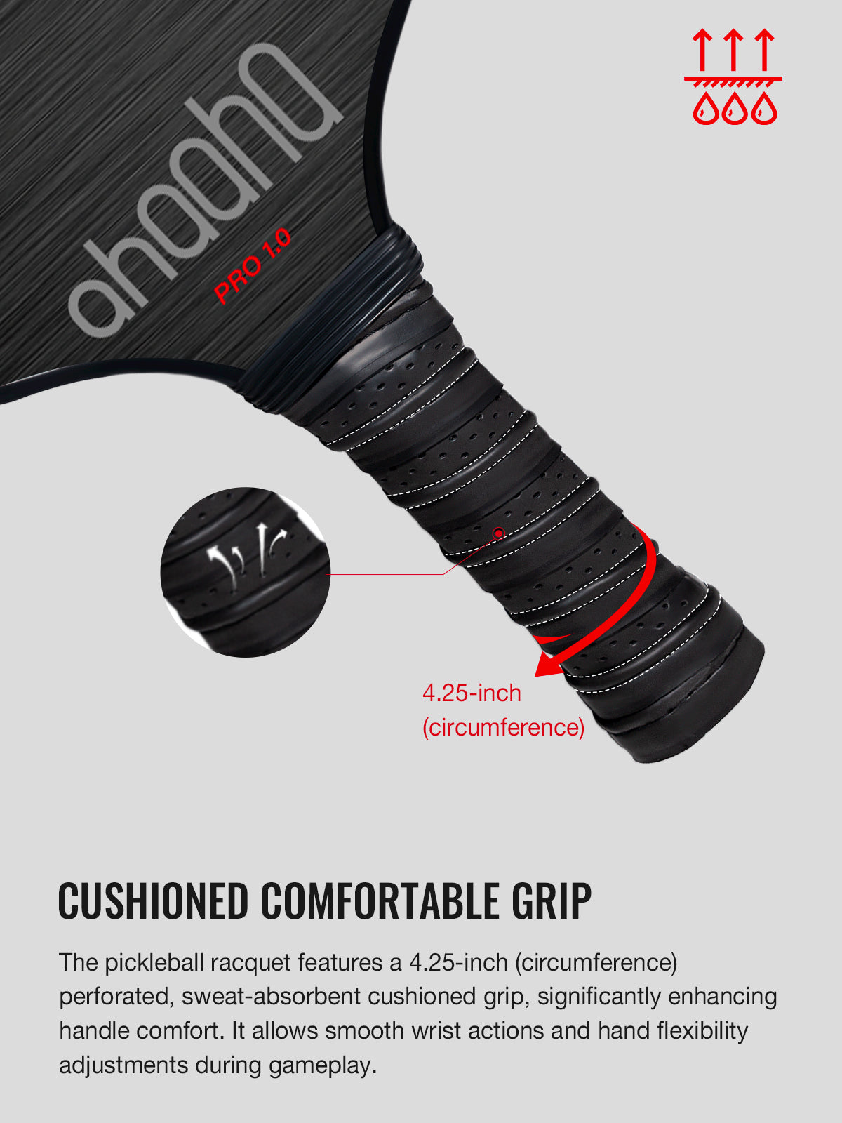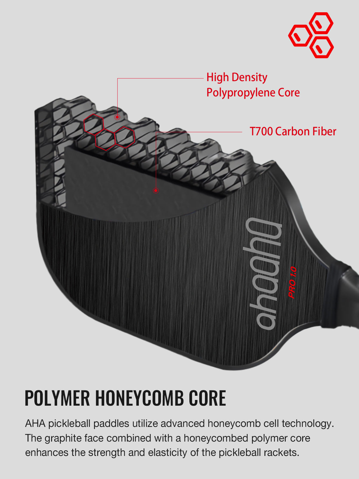 Game on! The AHA PRO 1.0 takes your pickleball skills to the next level. Engineered for advanced players, this paddle packs a serious punch with T700 carbon fiber and Unibody design for unmatched strength and responsiveness on every shot. The textured surface bites the ball for a wicked spin, while the bi-directional carbon fiber broadens the sweet spot for consistent power and control. Stylish aesthetics complement the high-performance function. Play your best.