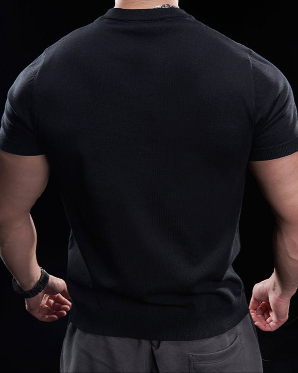 The ultimate high stretch tee that boosts your sophistication, hugs around your body, and flatters your physique! Vertical ribbed knit texture enables a even higher stretch and visual interest. The classic crew neck design makes it suitable for wearing alone and layering. It is the perfect piece for a light workout and any casual daily activities, even some smart-formal events. Its moist absorbing and quick dry fabrics ensure all-day comfort.