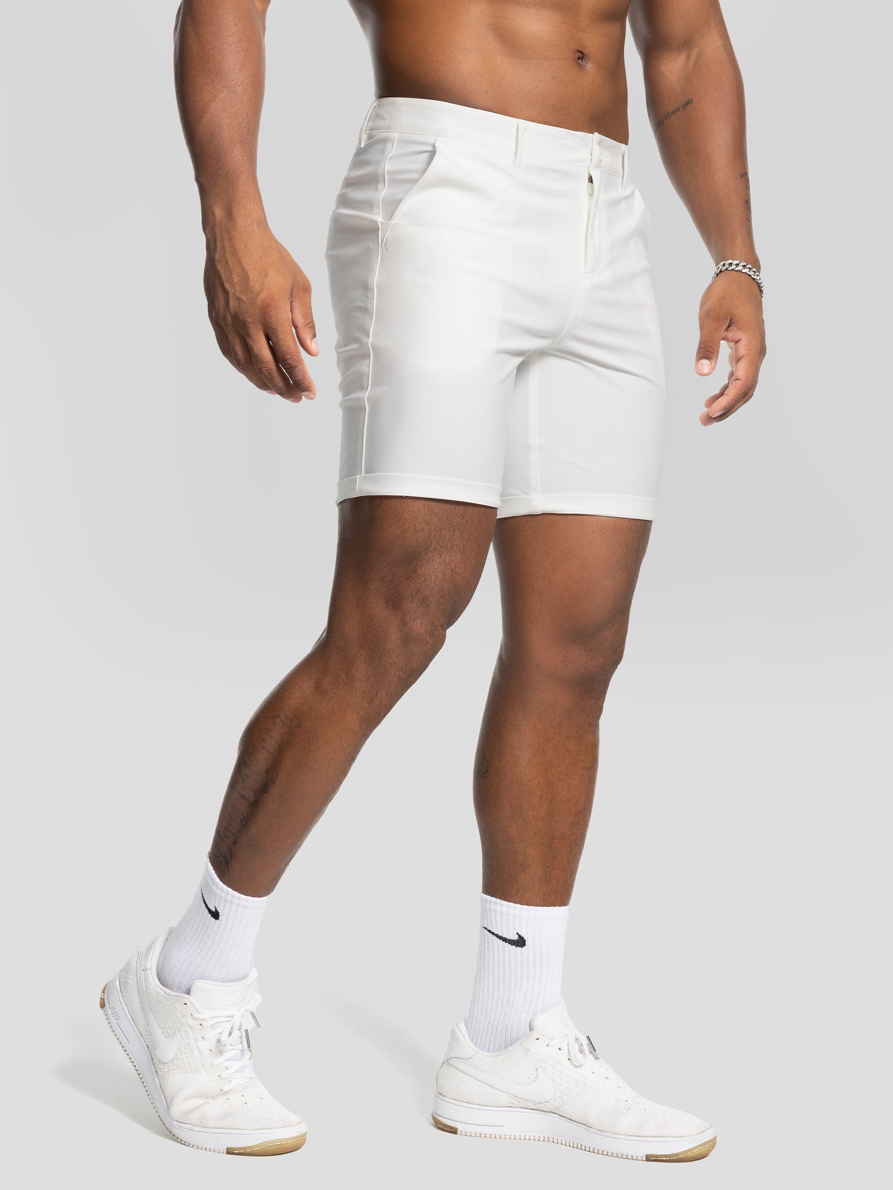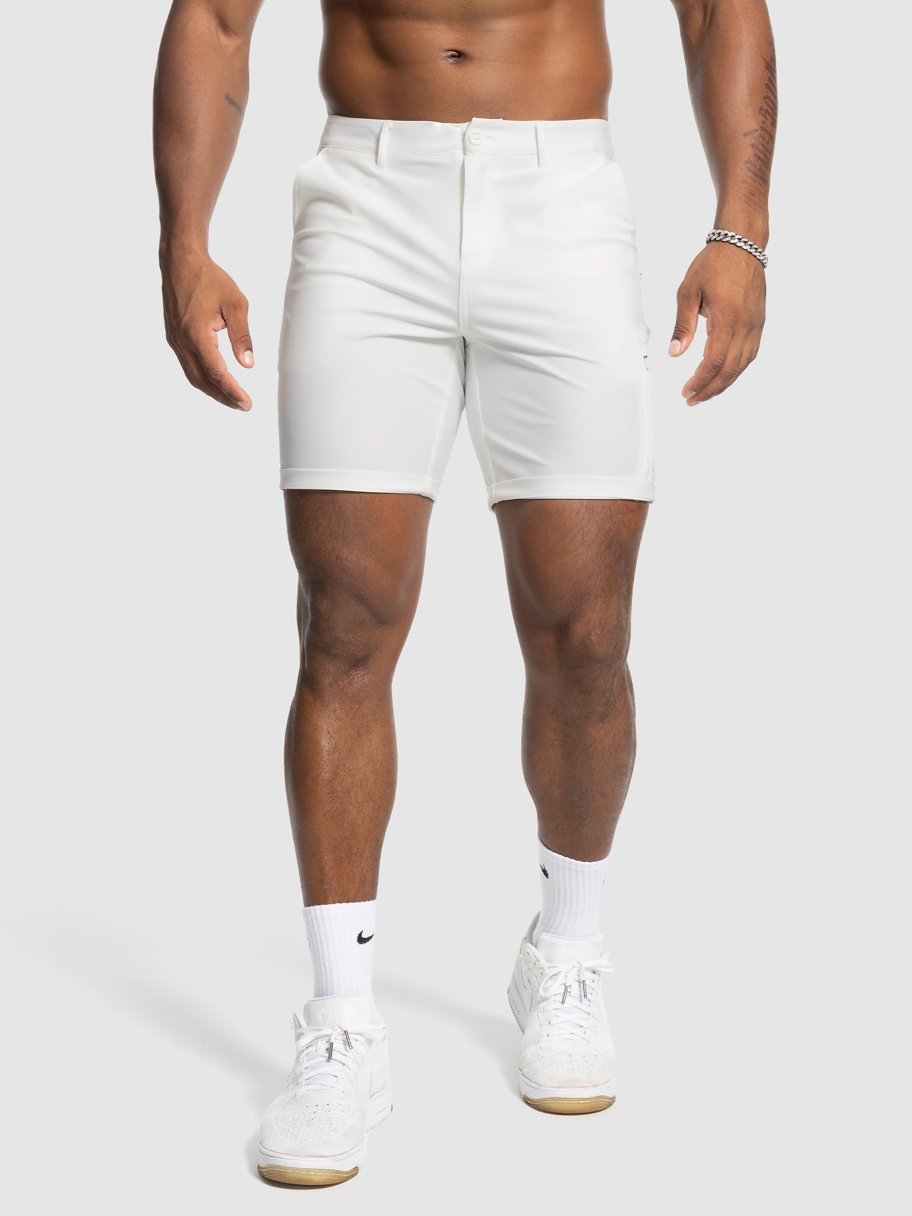 Slip into the perfect blend of relaxed comfort and refined style with our Chino Shorts. Crafted with true muscle fit, these shorts eliminate the need to size up for your thighs, delivering a tailored look that flatters your frame. Reinforced seams add a touch of resilience to this versatile wardrobe staple, ensuring it can keep up with your active lifestyle.