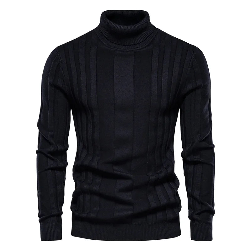 Elevate your everyday style with this refined ribbed turtleneck sweater, blending timeless sophistication with modern comfort.