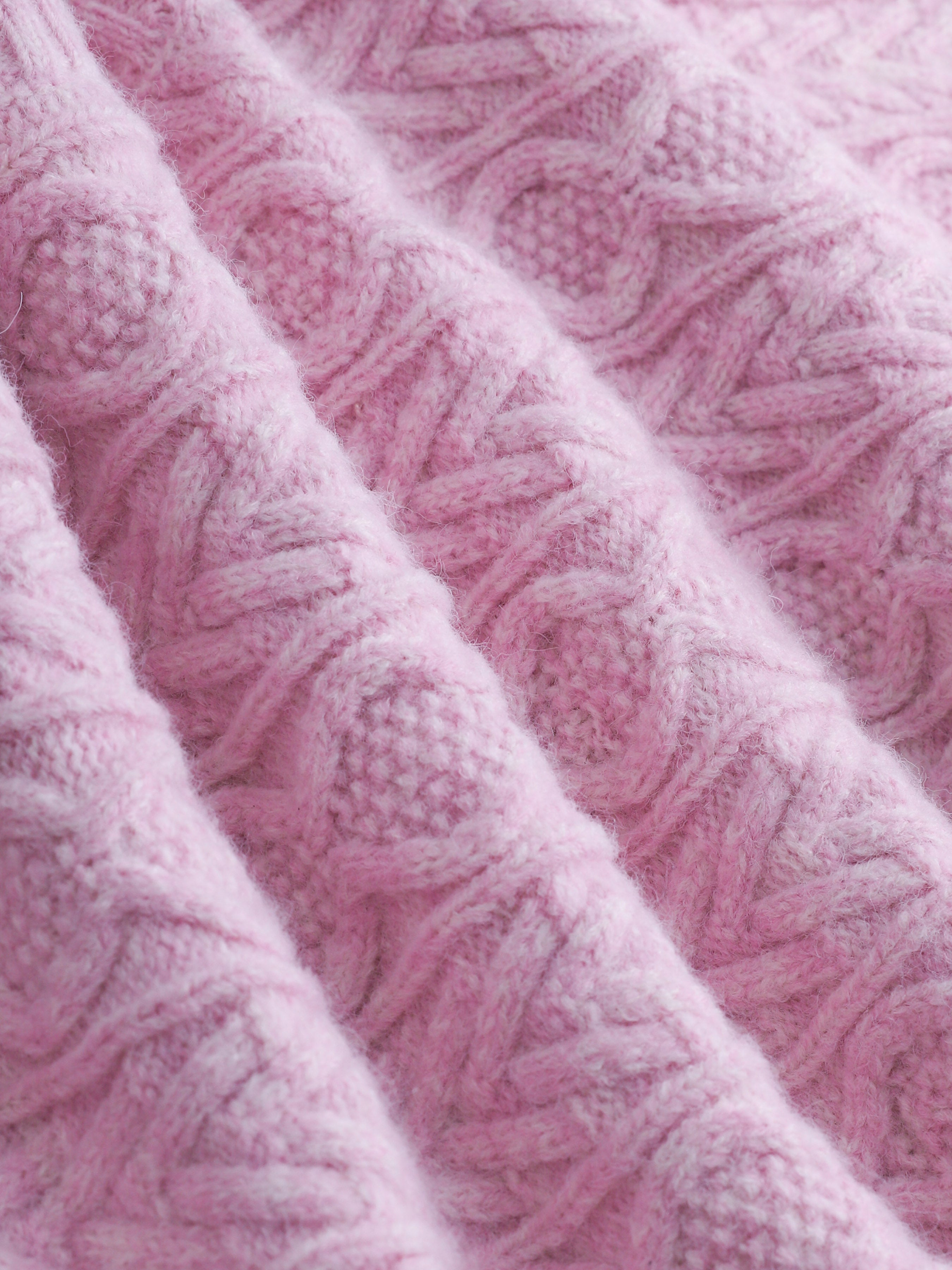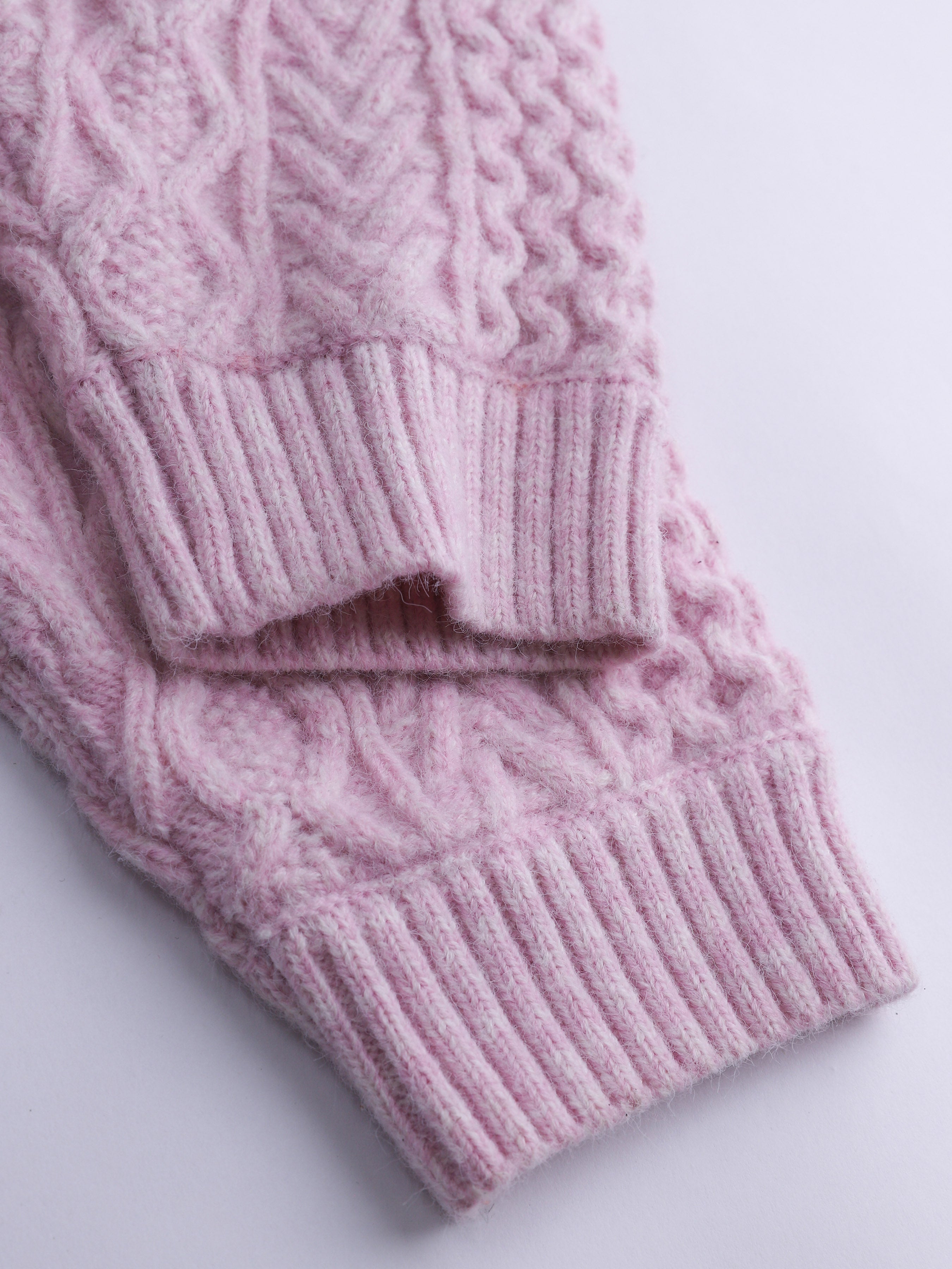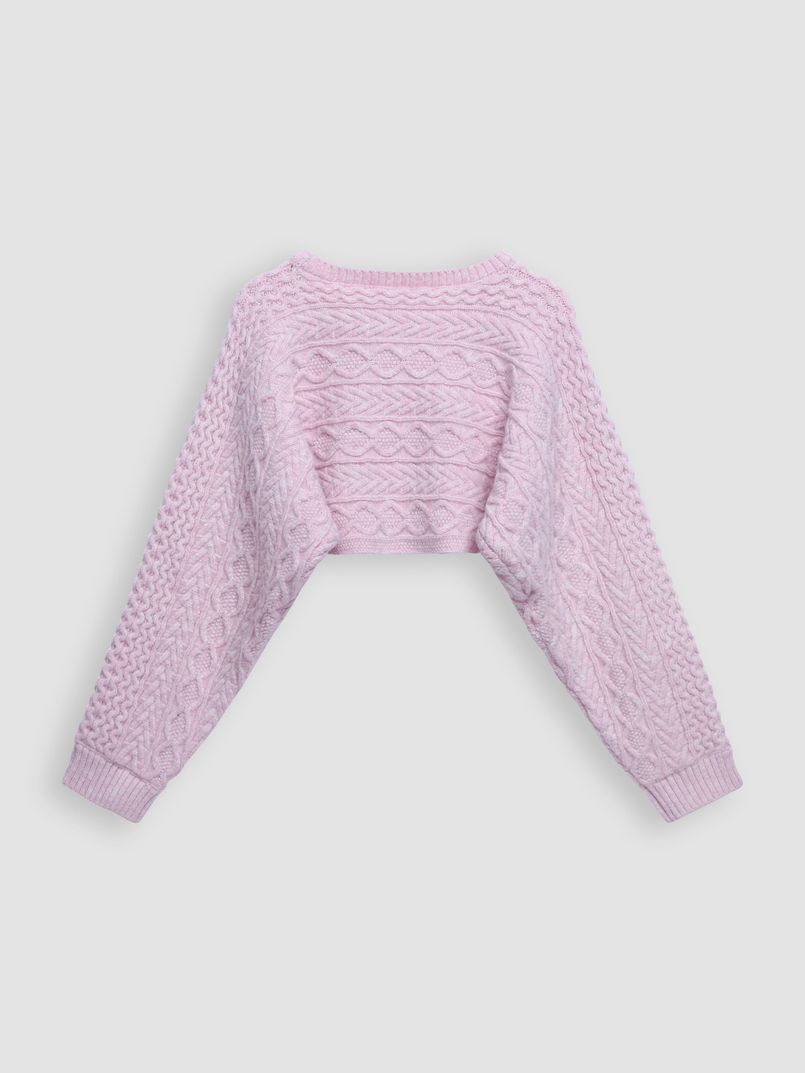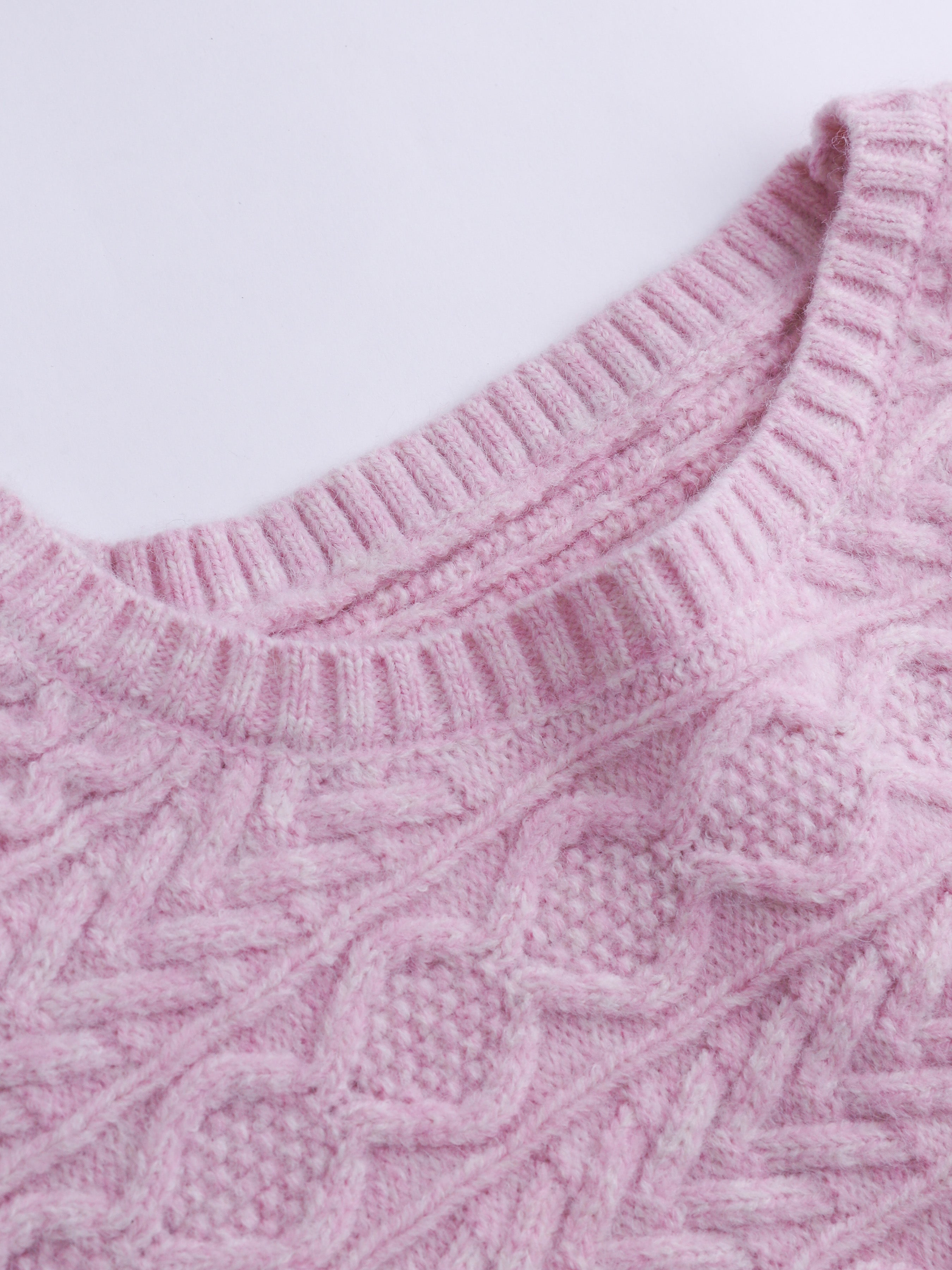 Cable Knit Cropped Loose Crewneck Long Sleeve Sweater