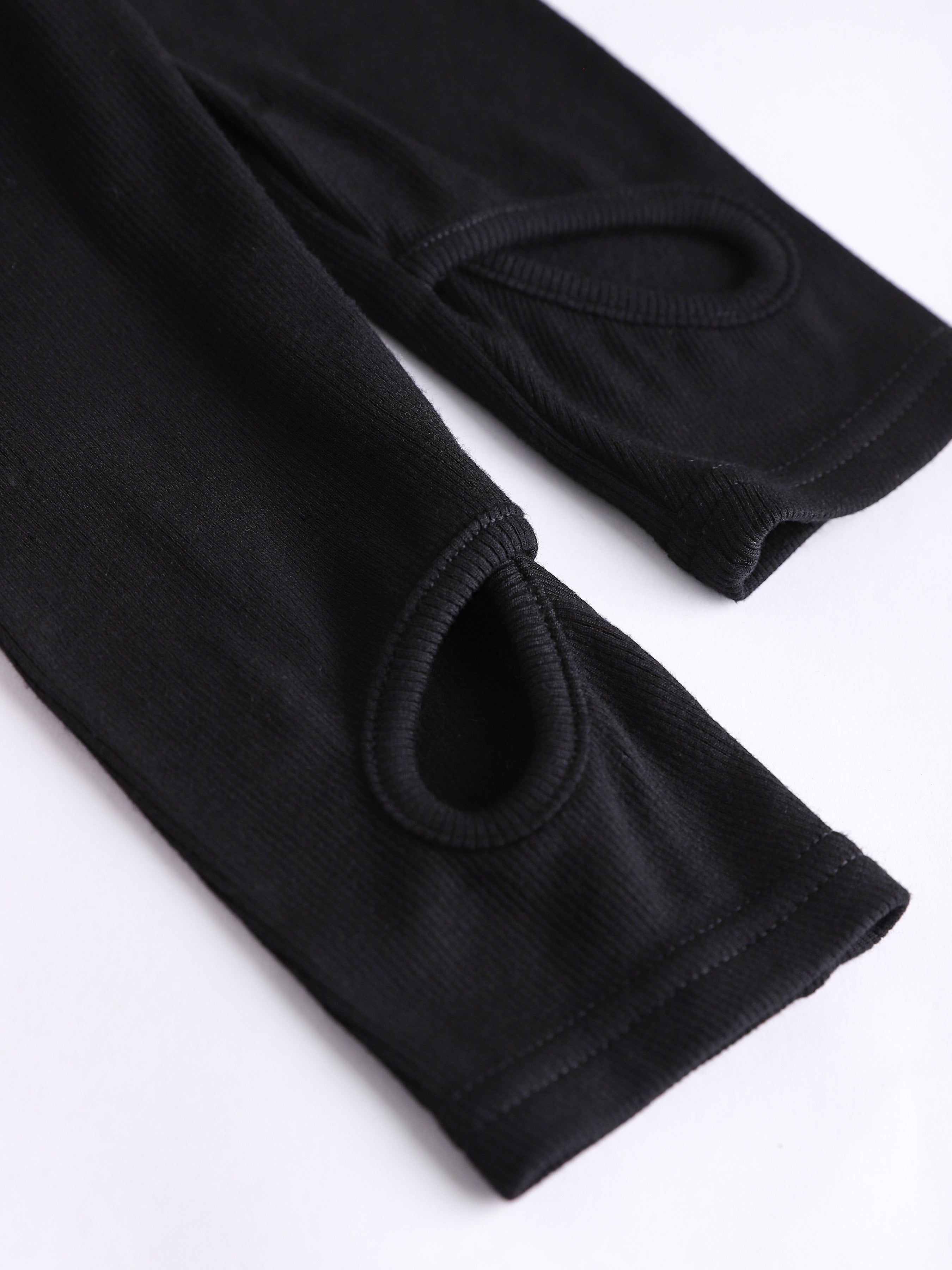 - Fabric: Stretchy ribbed knit fabric