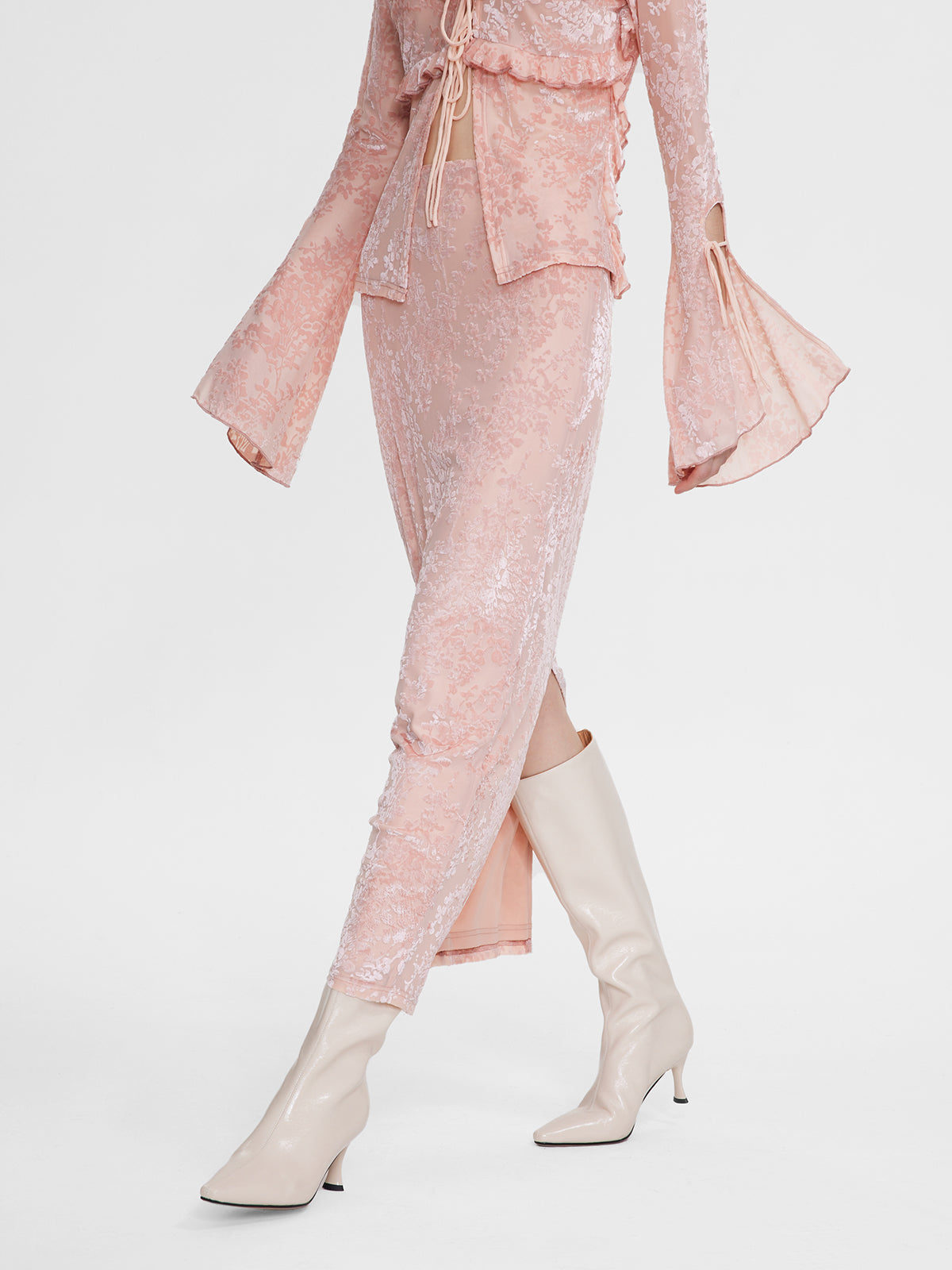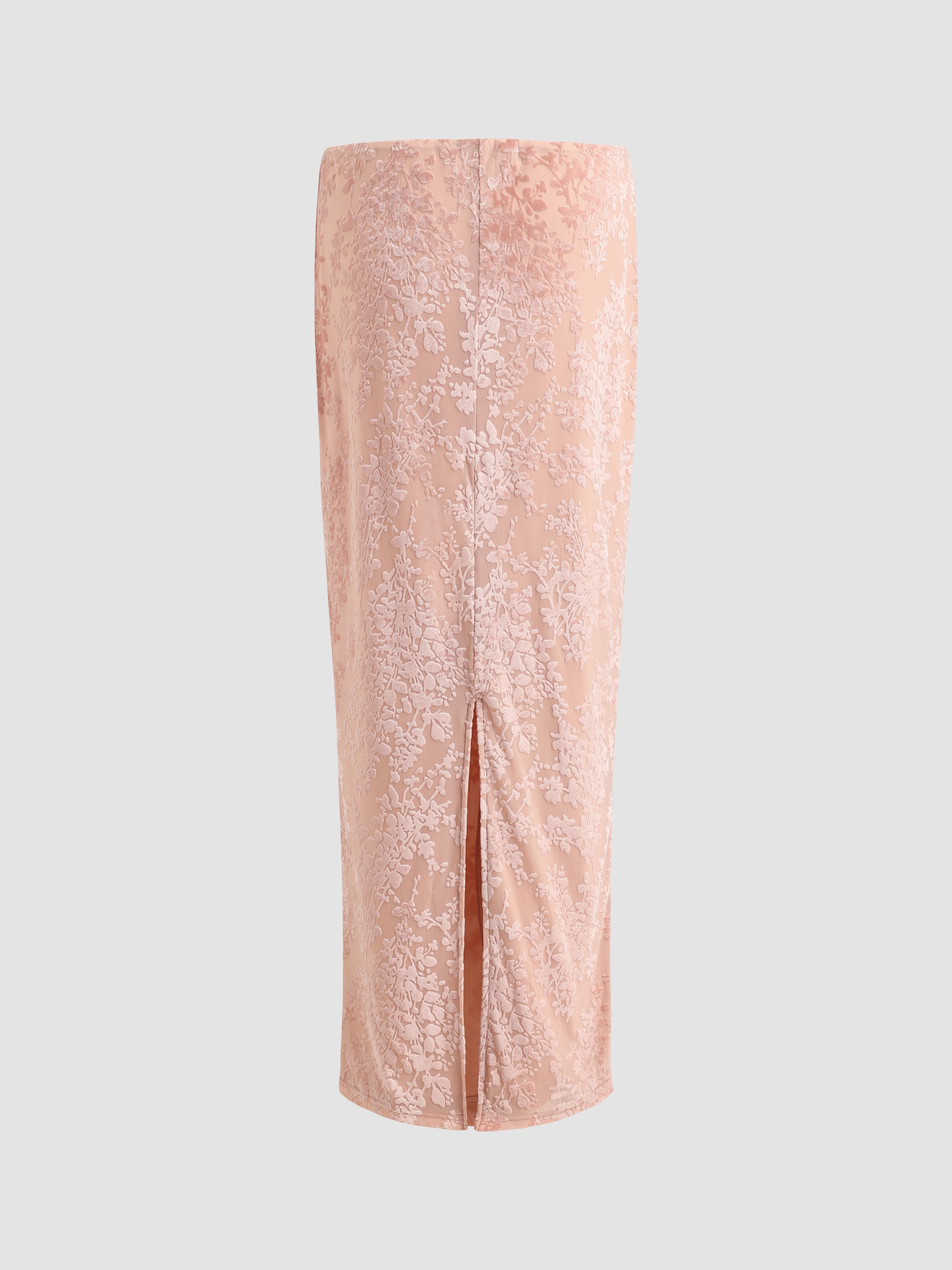 - Made from a jacquard velvet material with a figure-flattering fit, this skirt is sure to have you looking all kinds of chic.