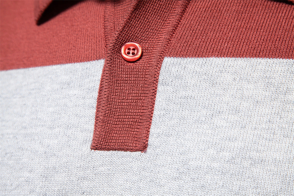 A refined take on casual comfort, this Colorblock Striped Long Sleeve Polo Sweater brings together classic design and modern stretch for all-day ease. Featuring bold horizontal stripes in navy, grey, and burgundy tones, it delivers a timeless yet contemporary look that works equally well for weekend outings or smart-casual settings. The soft knit fabric ensures a smooth feel and lasting shape wear after wear.