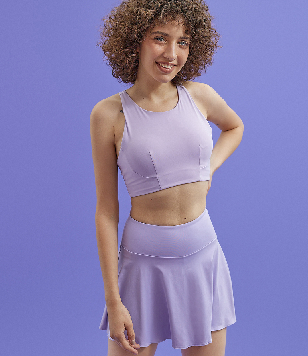 This is a high rise sports skirt with build-in shorts and side pockets. It's made with noly and spandex fabric.Classic design suits for all motions especially for pickleball. Make your simple move graceful.