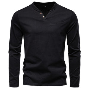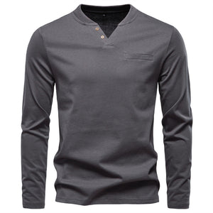 Men’s Casual Buttoned Henley Long-Sleeve T-Shirt