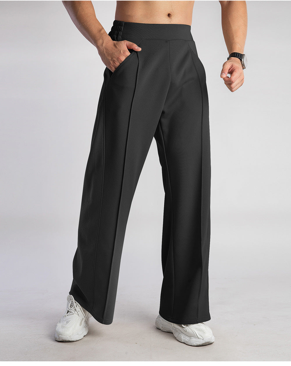 Men's Mid-Waist Wide-Leg Pants - Ahaselected