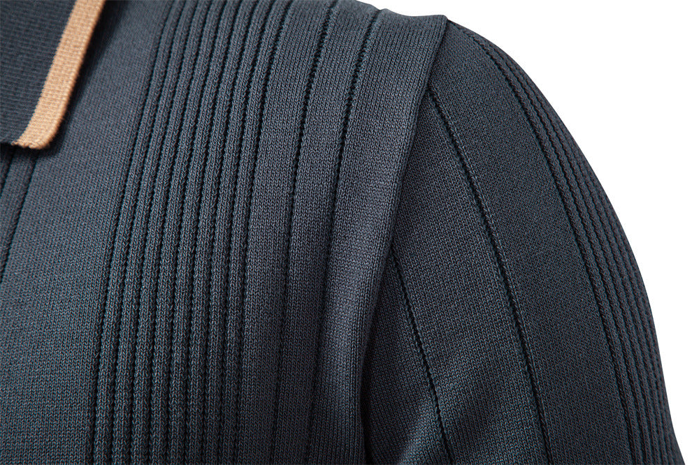 Men’s Ribbed Knit Polo Sweater