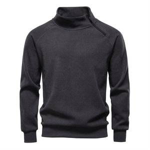 Men's Thick Fleece-lined Sweatshirt With Slant Zipper Collar - Ahaselected