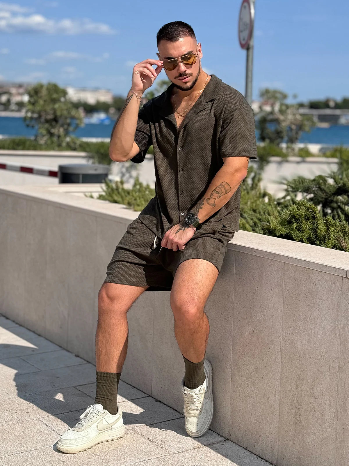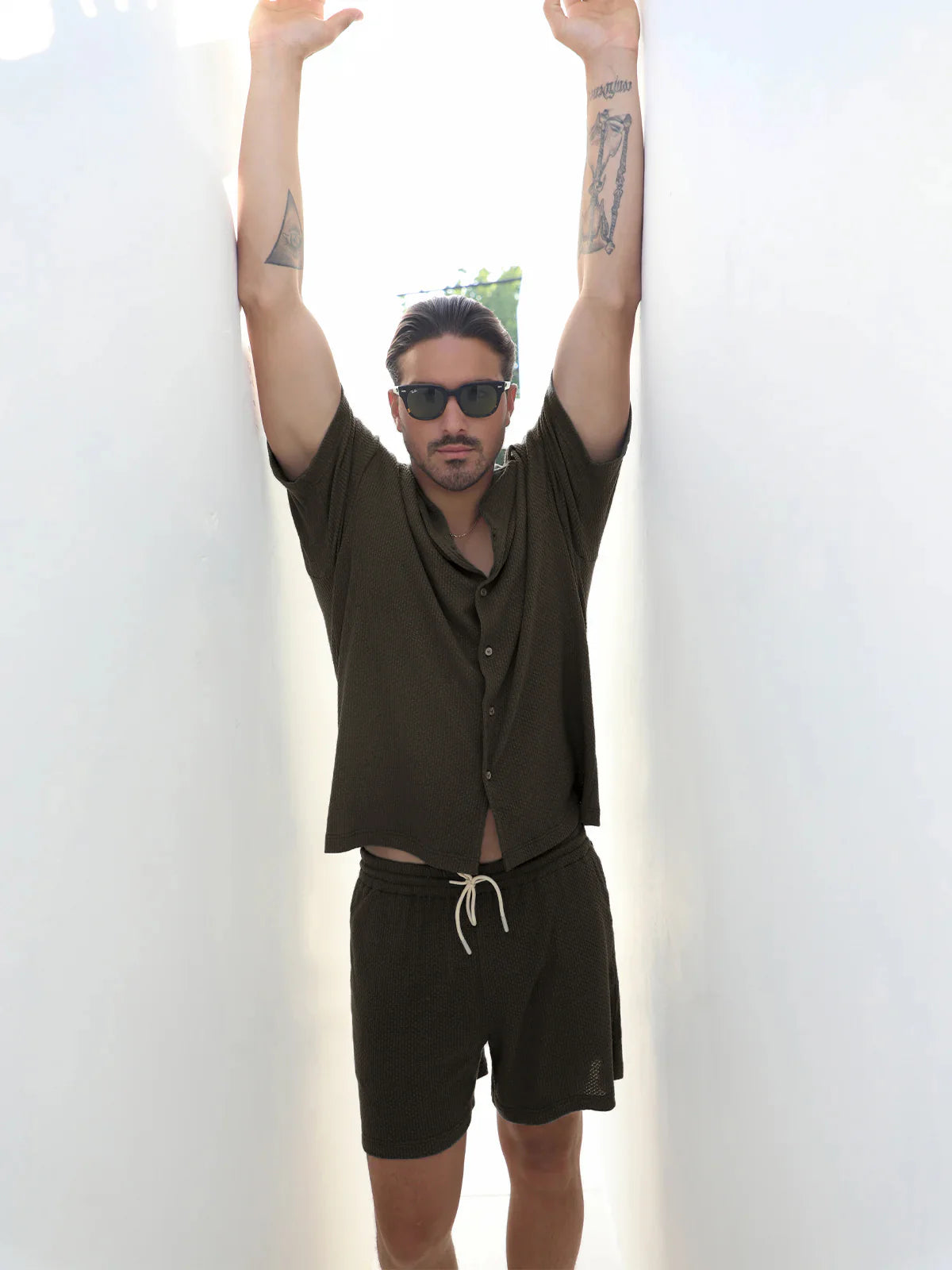 Set: Knit Hawaiian Set Shirt +Short Sand(Final Sale–No Return or Exchange)