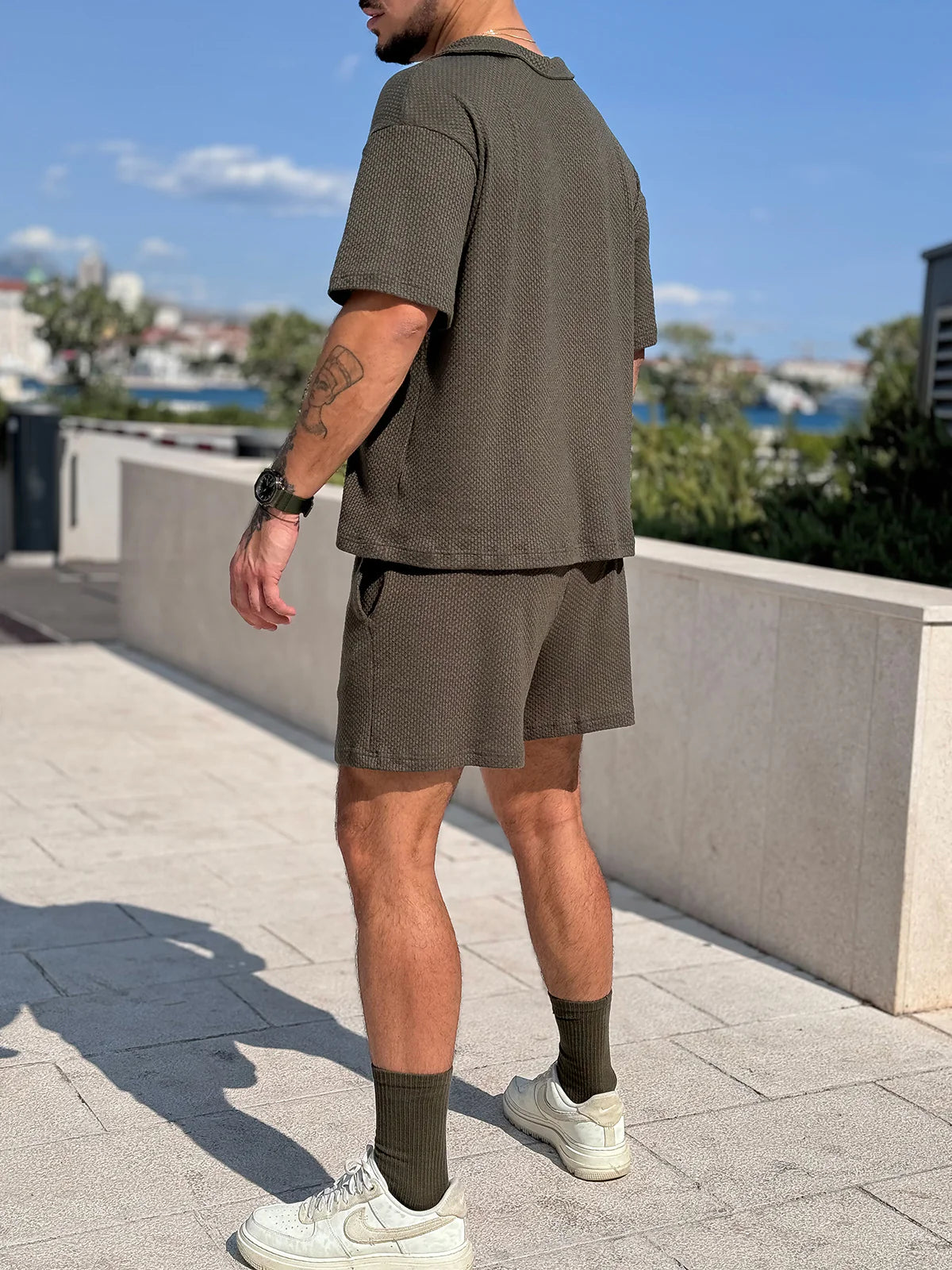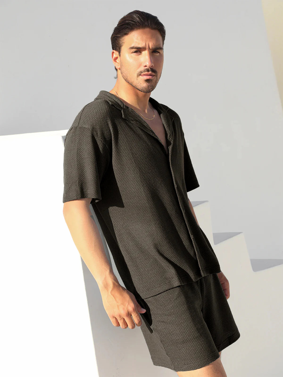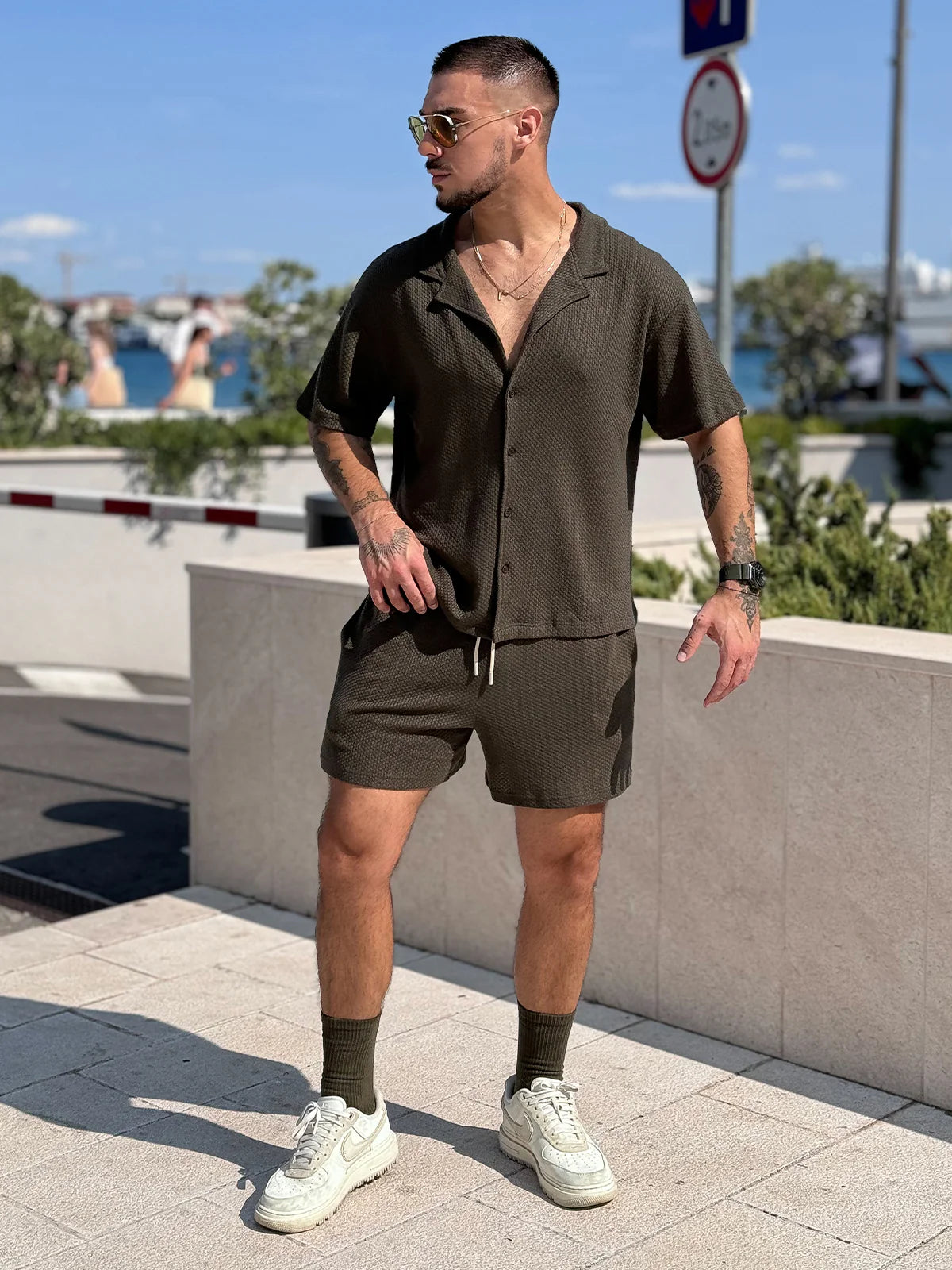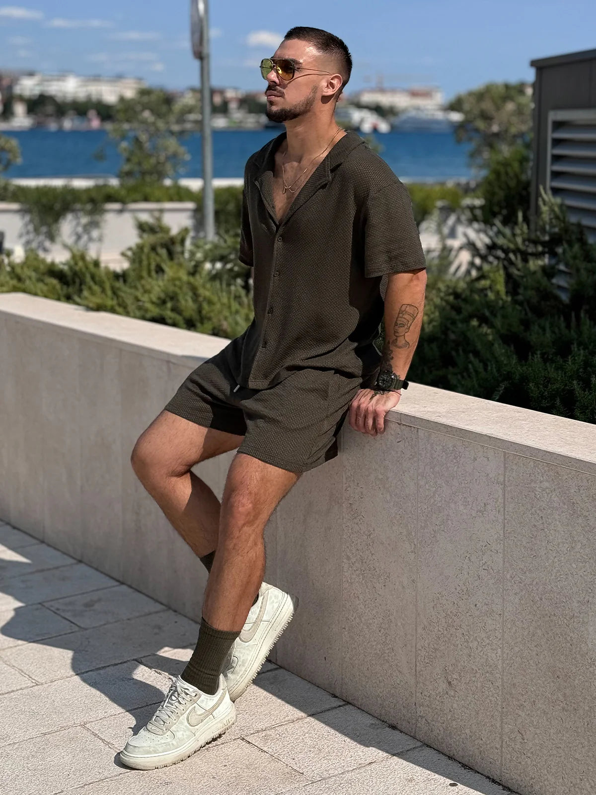 Set: Knit Hawaiian Set Shirt +Short Sand - Ahaselected