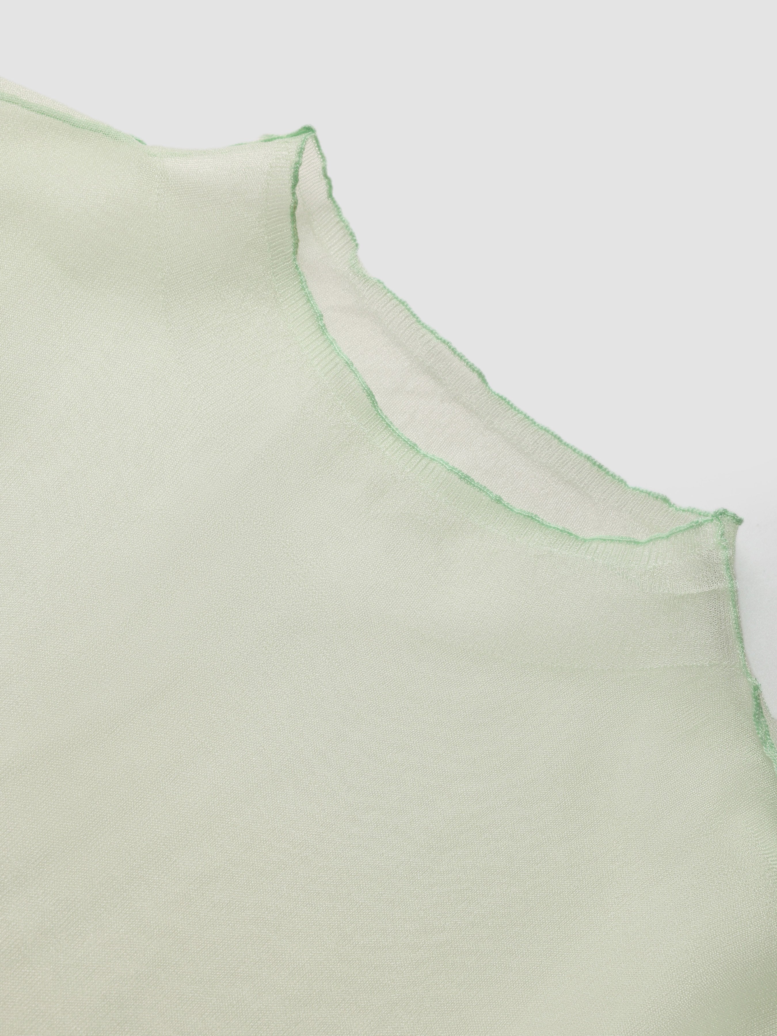 - Indulge in an elegant, subtly revealing look with this partially see-through mesh top, a perfect blend of mystery and chic.