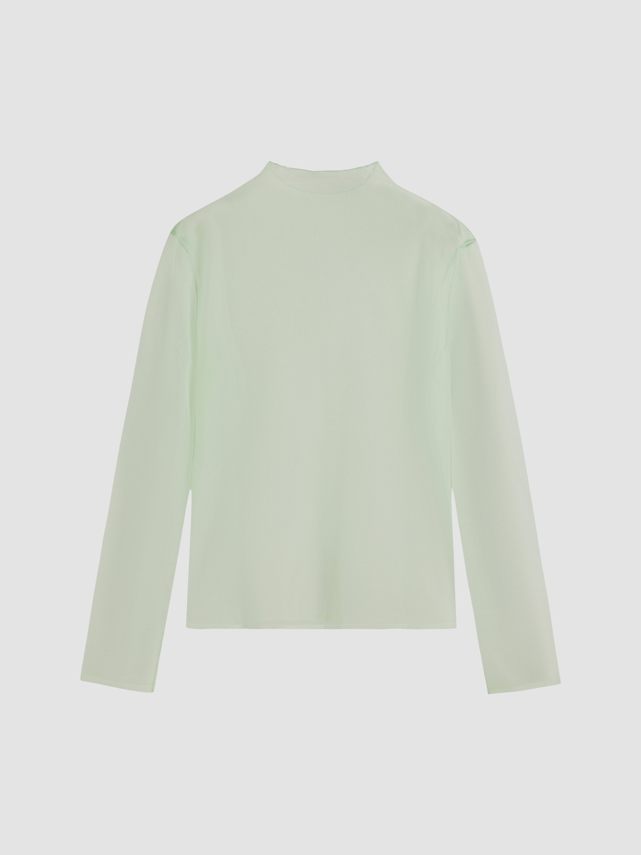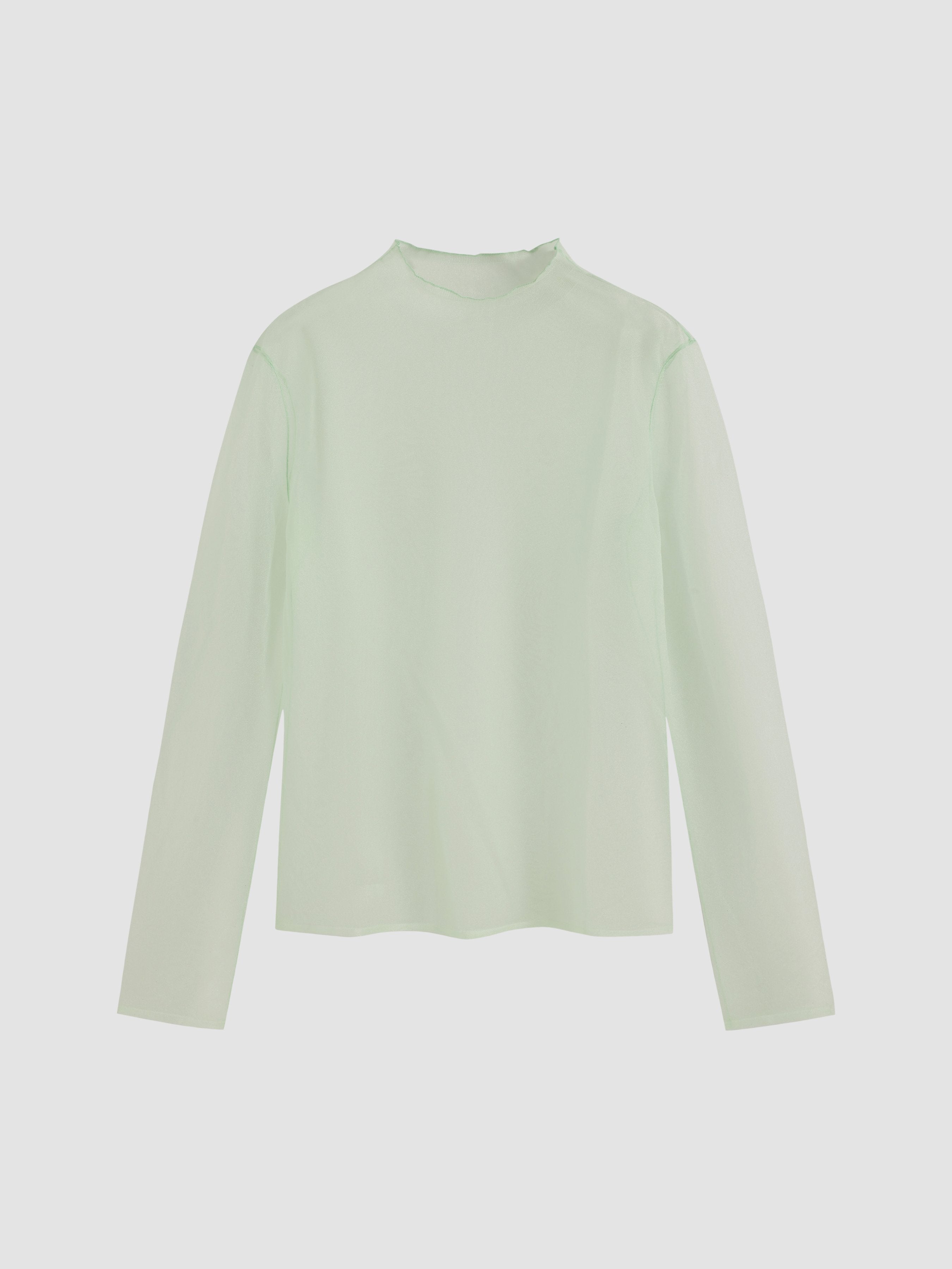 Mesh Sheer Turtleneck Long Sleeve T-shirt
