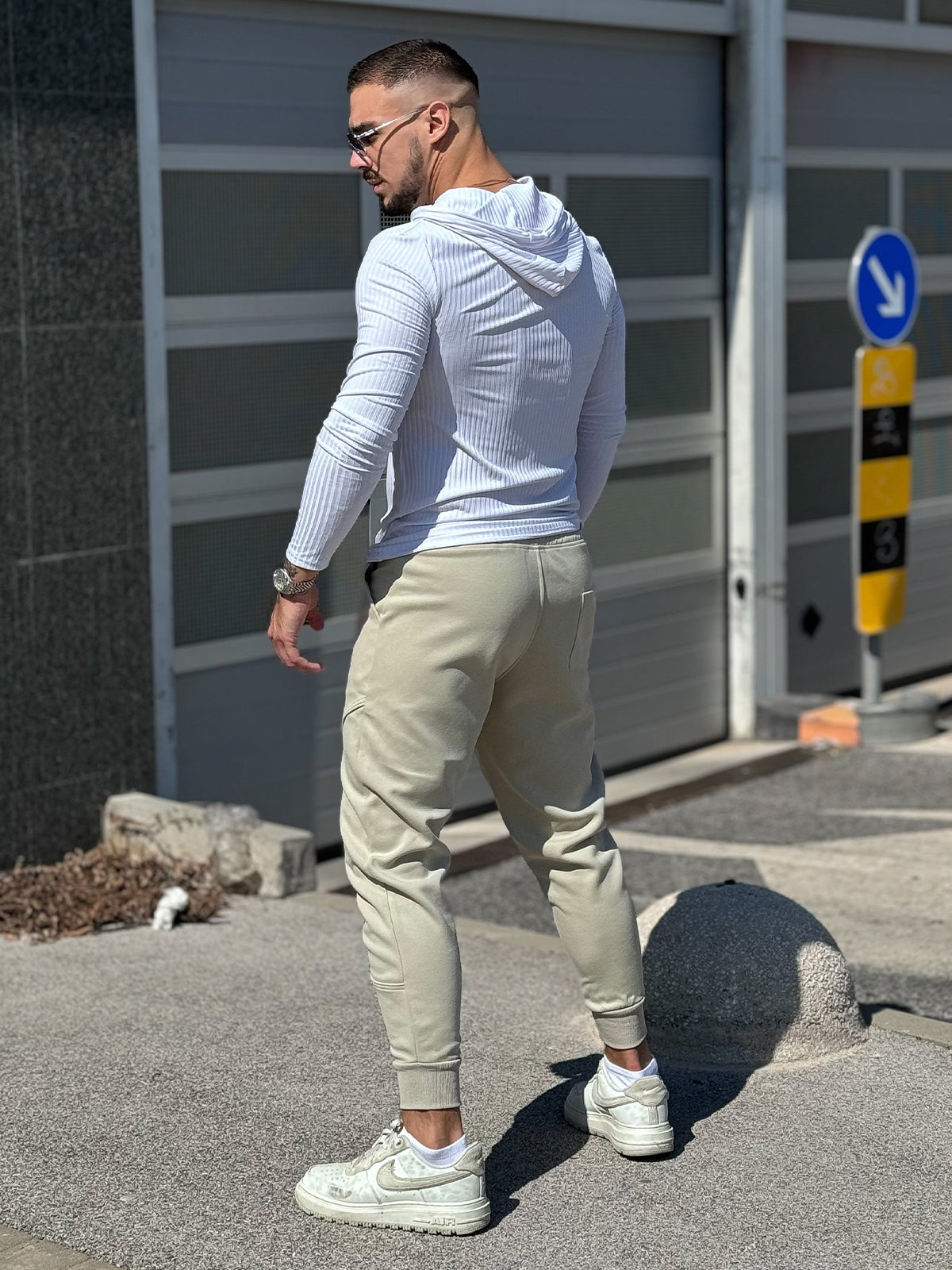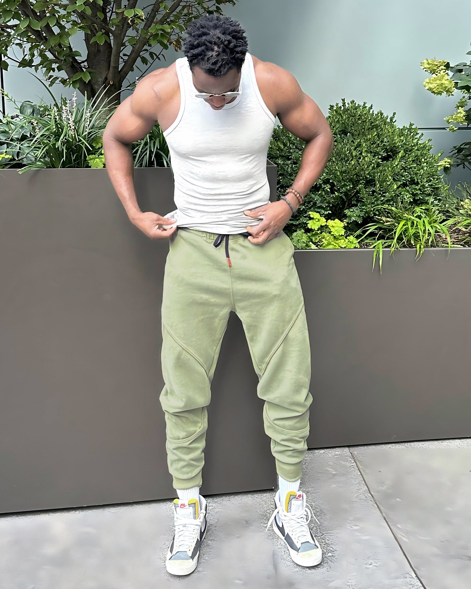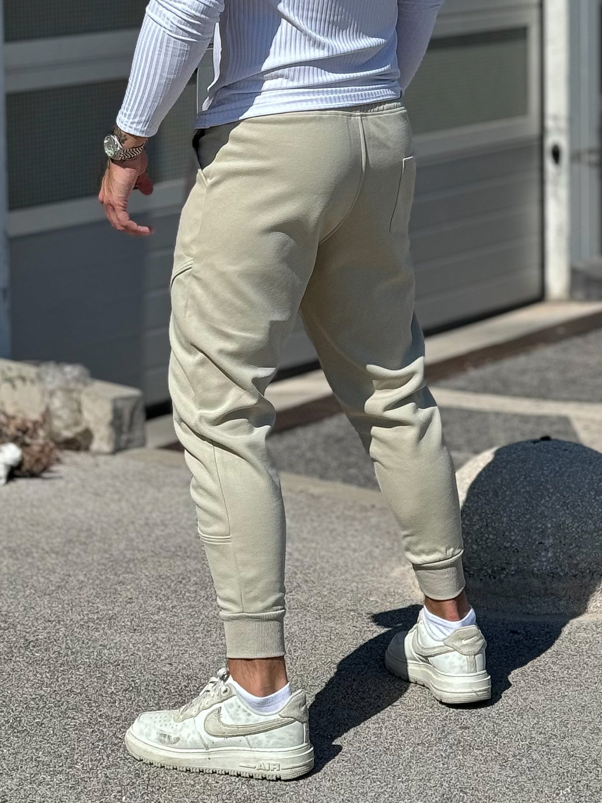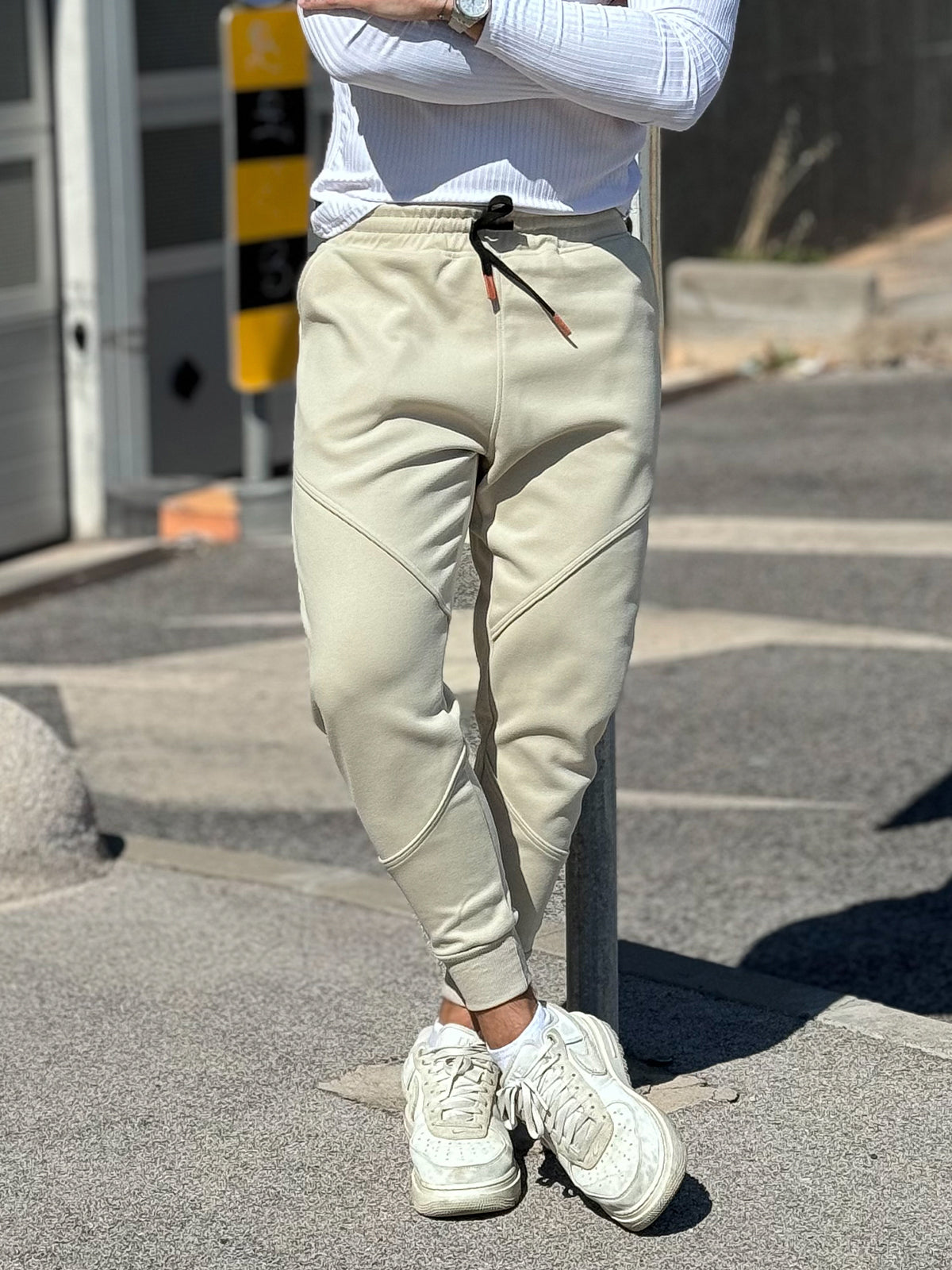 - Tapered leg fit with encased elastic cuffs