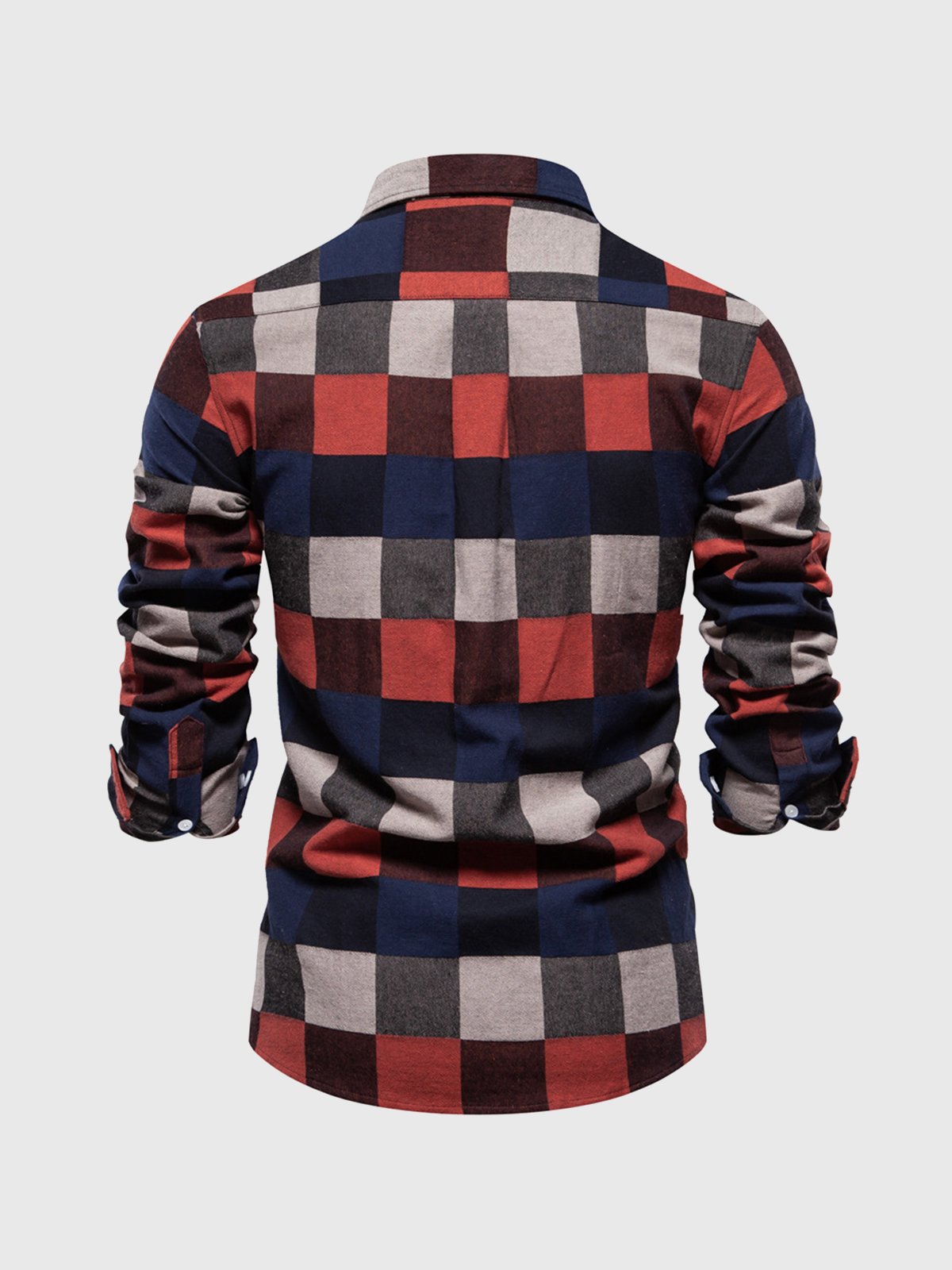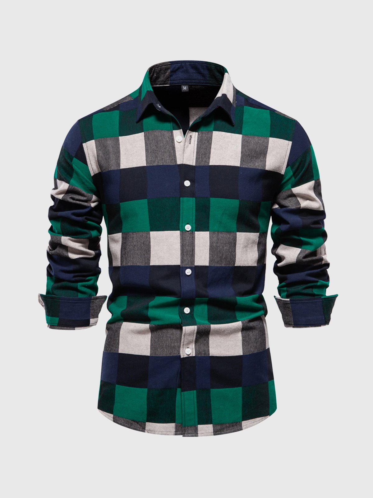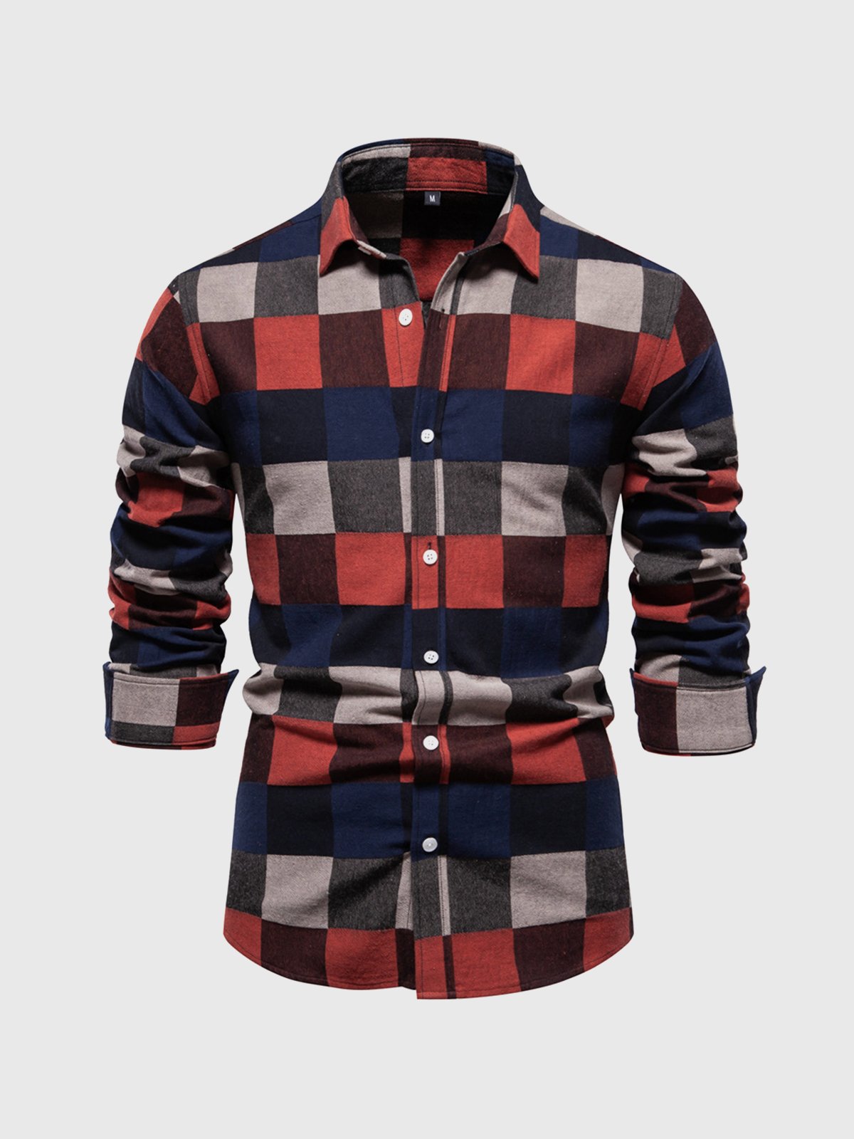 This wrinkle-resistant, soft cotton shirt was crafted to provide enduring comfort and style. The breathable fabric and full-button front allow air to circulate, while the smooth stitching promises the shirt will last. Details like the lapel collar, adjustable cuffs, and classic plaid pattern give a timeless, stylish look. Overall, this was designed to be a comfortable, long-lasting, fashionable shirt perfect for a variety of occasions.