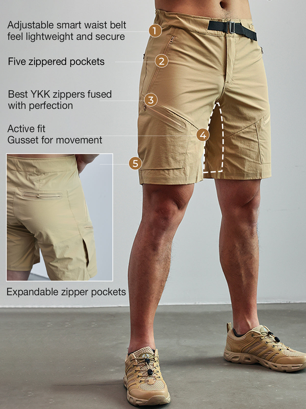 This is AHA moment!Trust the tactical short to commit to your ambitions when stepping into the backcountry for a multiday backpack trip or challenging hike. Whatever comes, this high-performance stretch nylon short is ready. Wind resistant, durable and fast drying, the trim fit's articulated patterning frees your movement. The adjustable waist belt rides comfortably under a pack while five zippered pockets, including accessible and secure ones at each thigh, keep your essentials in reach.