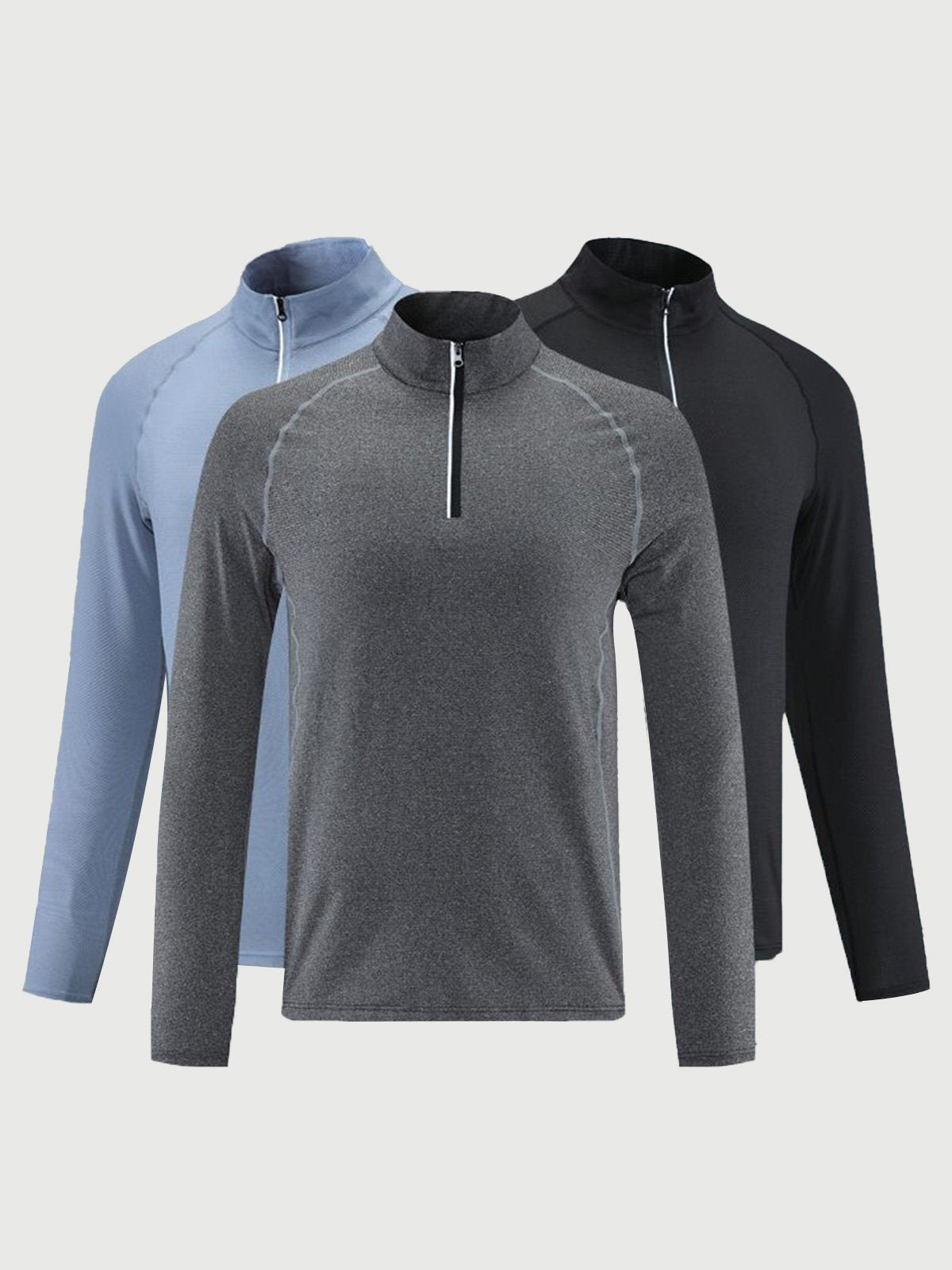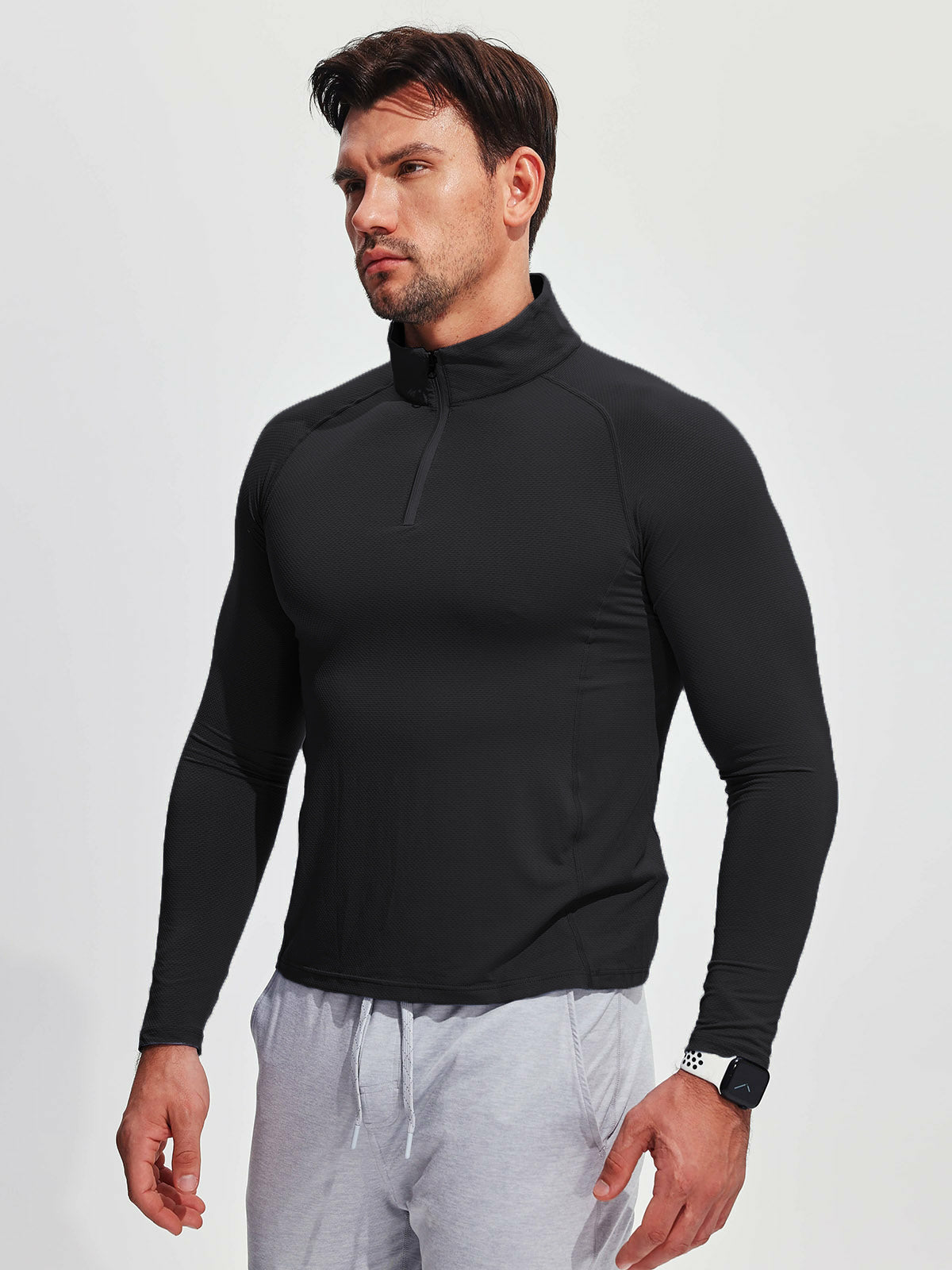 This is a Vent Half-Zip design pullover workout long sleeve shirt. Built to perform, sweat after sweat.