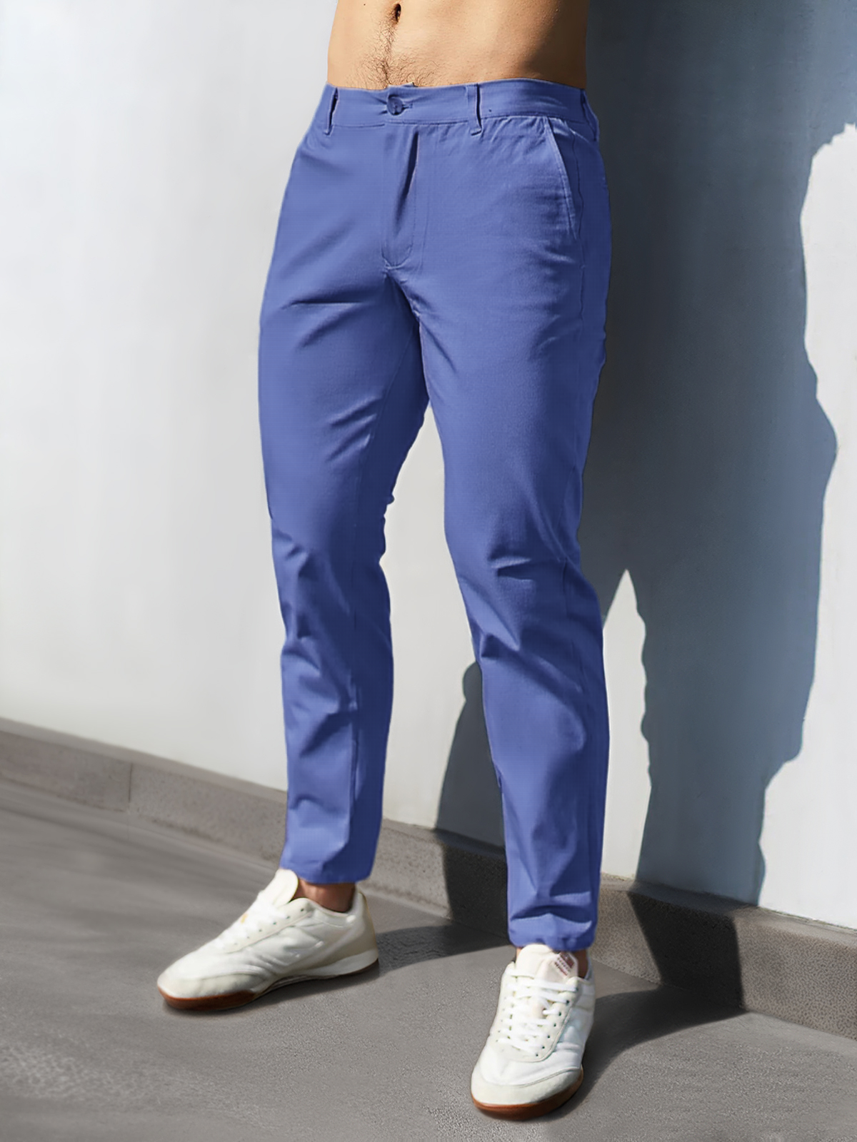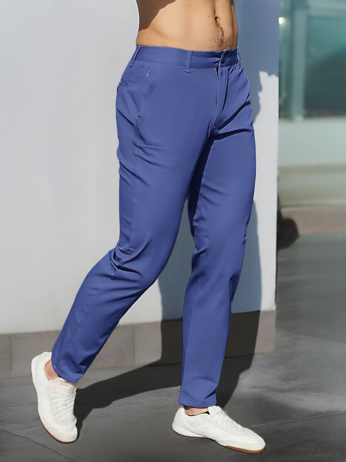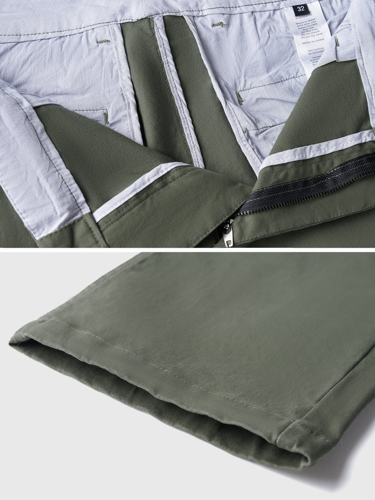 These men's chino pants versatile slacks are thoughtfully designed with features to keep you comfortable, secure and stylish all day long. Moisture-wicking, wrinkle-resistant fabric provides a great fit and shape retention. Convenient pockets securely hold your must-haves, while contrast pocket linings and decorative buttons add visual interest. The contoured waistband, 4-way stretch and reinforced construction ensure exceptional comfort and durability you can rely on.