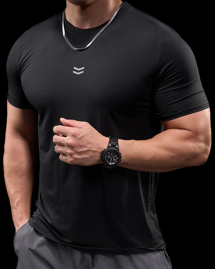 Elevate your active lifestyle with our sleek Quick Dry Performance Shirt, designed for those who demand both style and functionality in their athletic wear. The soft, breathable material ensures all-day comfort, whether you're breaking a sweat or running errands. The active fit allows for movement, while the crew neck offers protection against wind and sun. Thoughtfully placed pattern details enhance your safety during early morning or evening workouts.