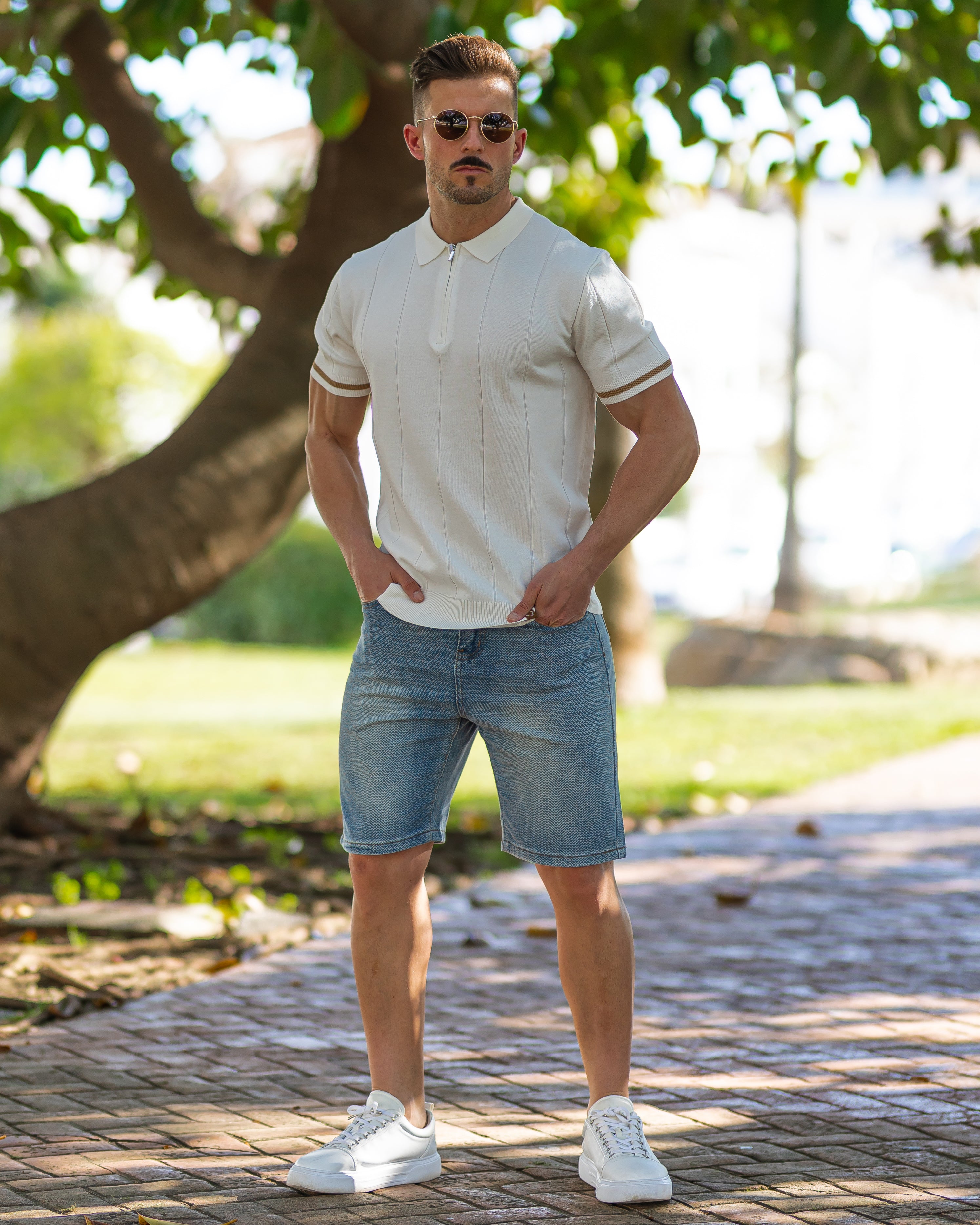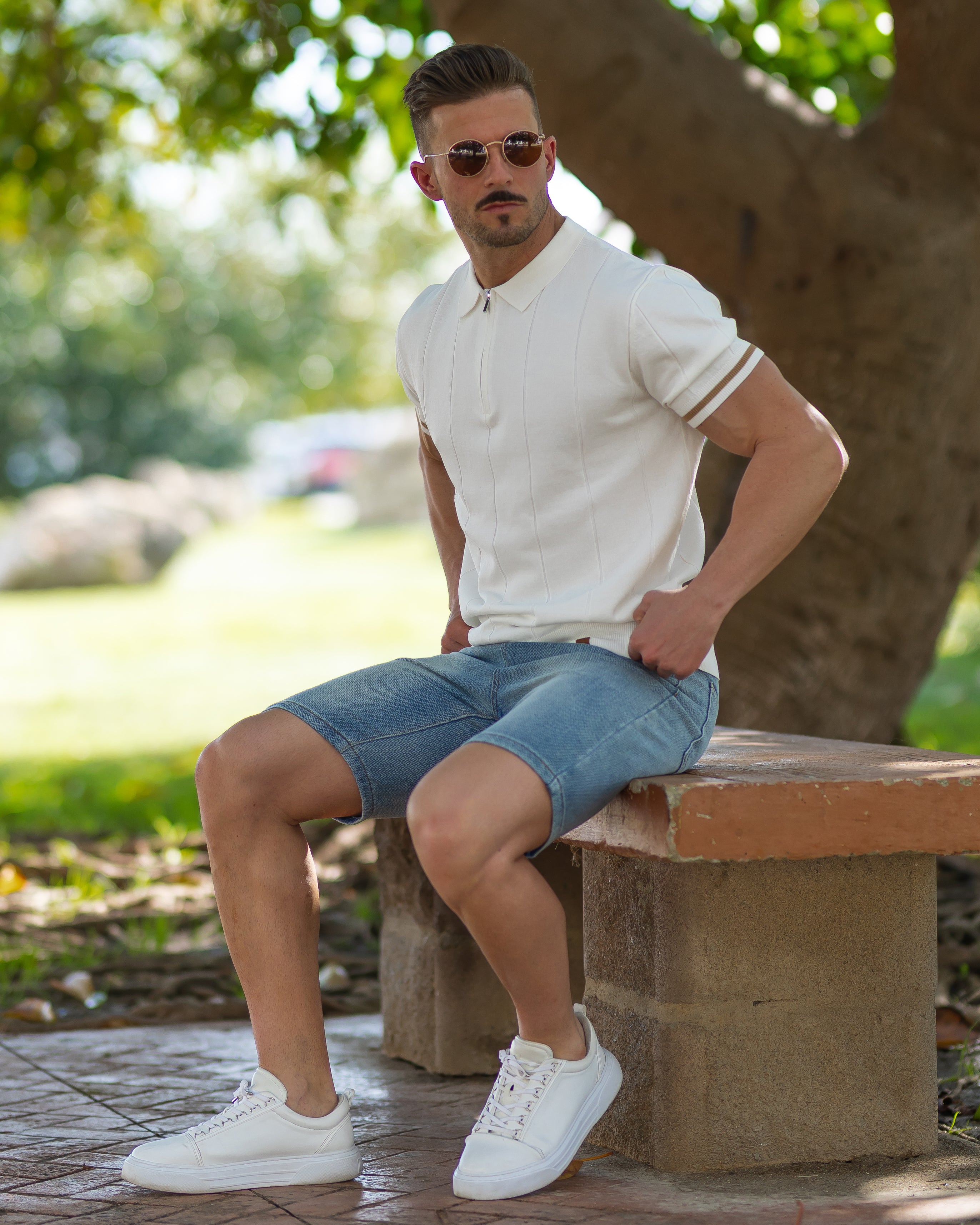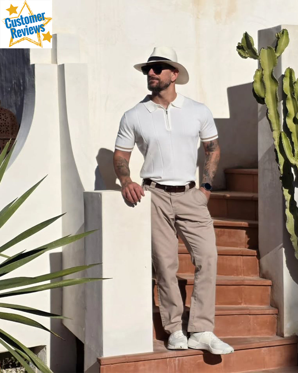 This evryday-style polo knit shirt is crafted from a soft and breathable 66.7% viscose and 33.3% polyester blend, offering a smooth and lightweight feel. Featuring sleeve stripes, it brings a bold yet relaxed aesthetic perfect for vacations and casual outings. The short sleeves and knit texture add a modern twist to this effortless summer staple.