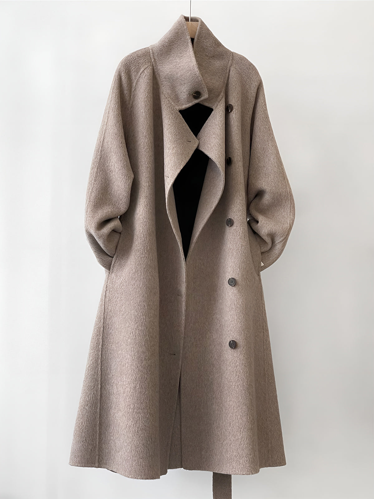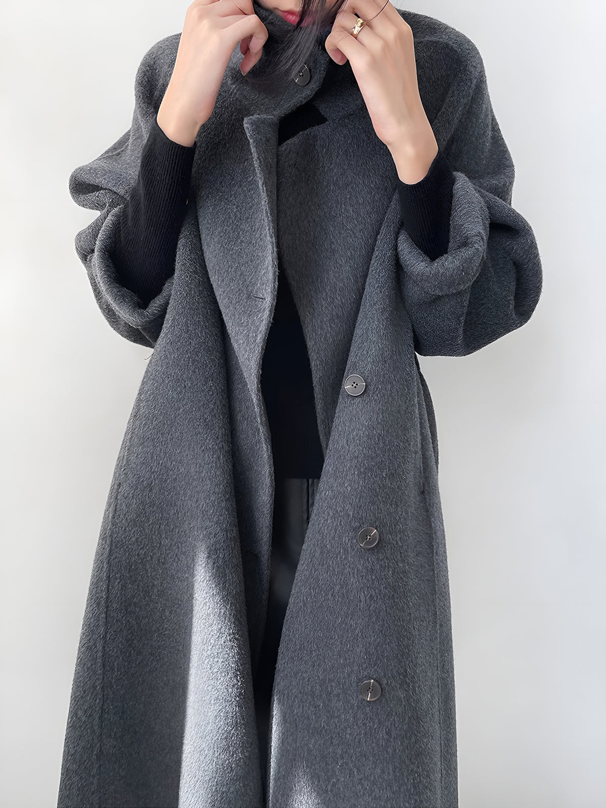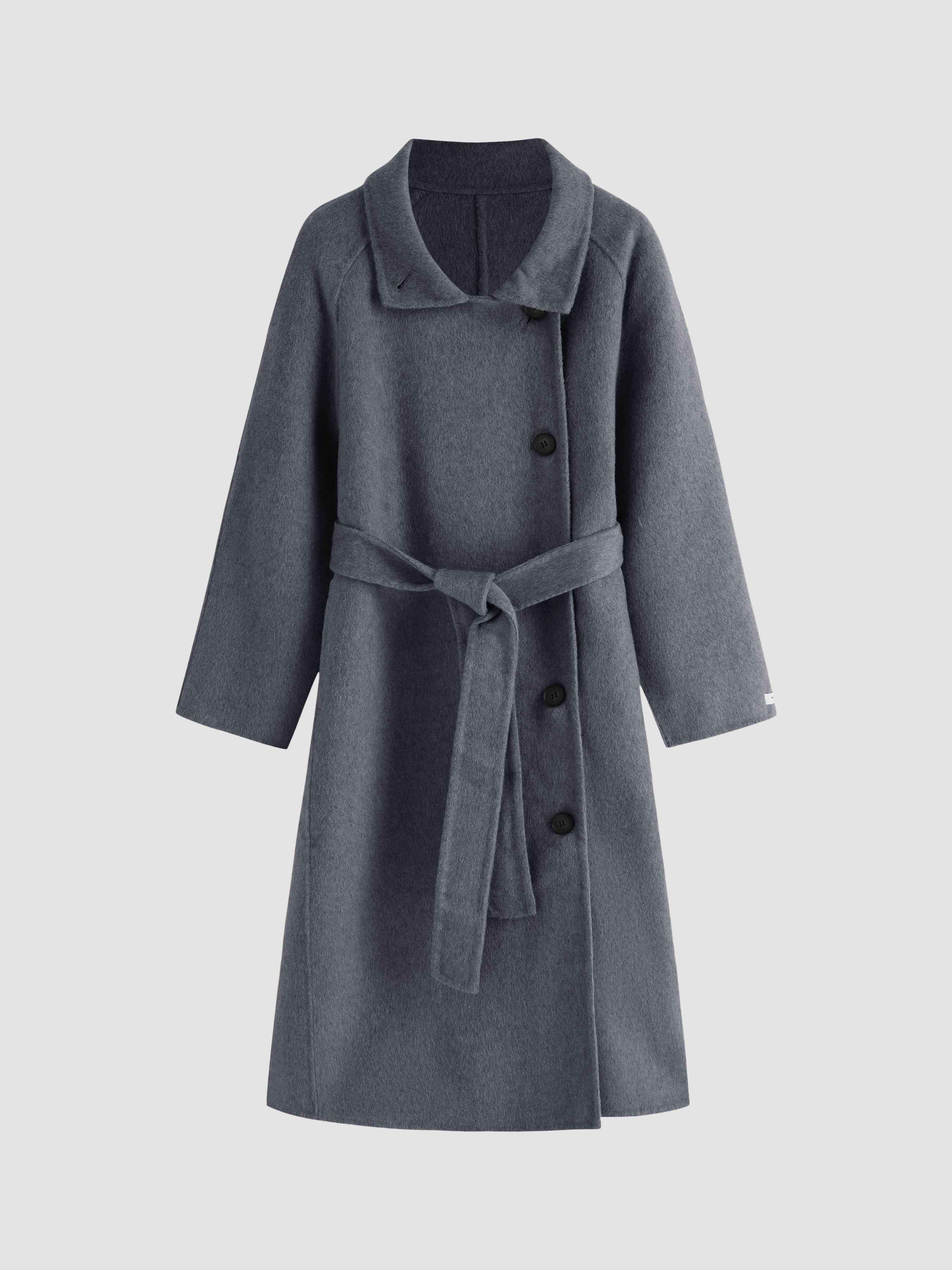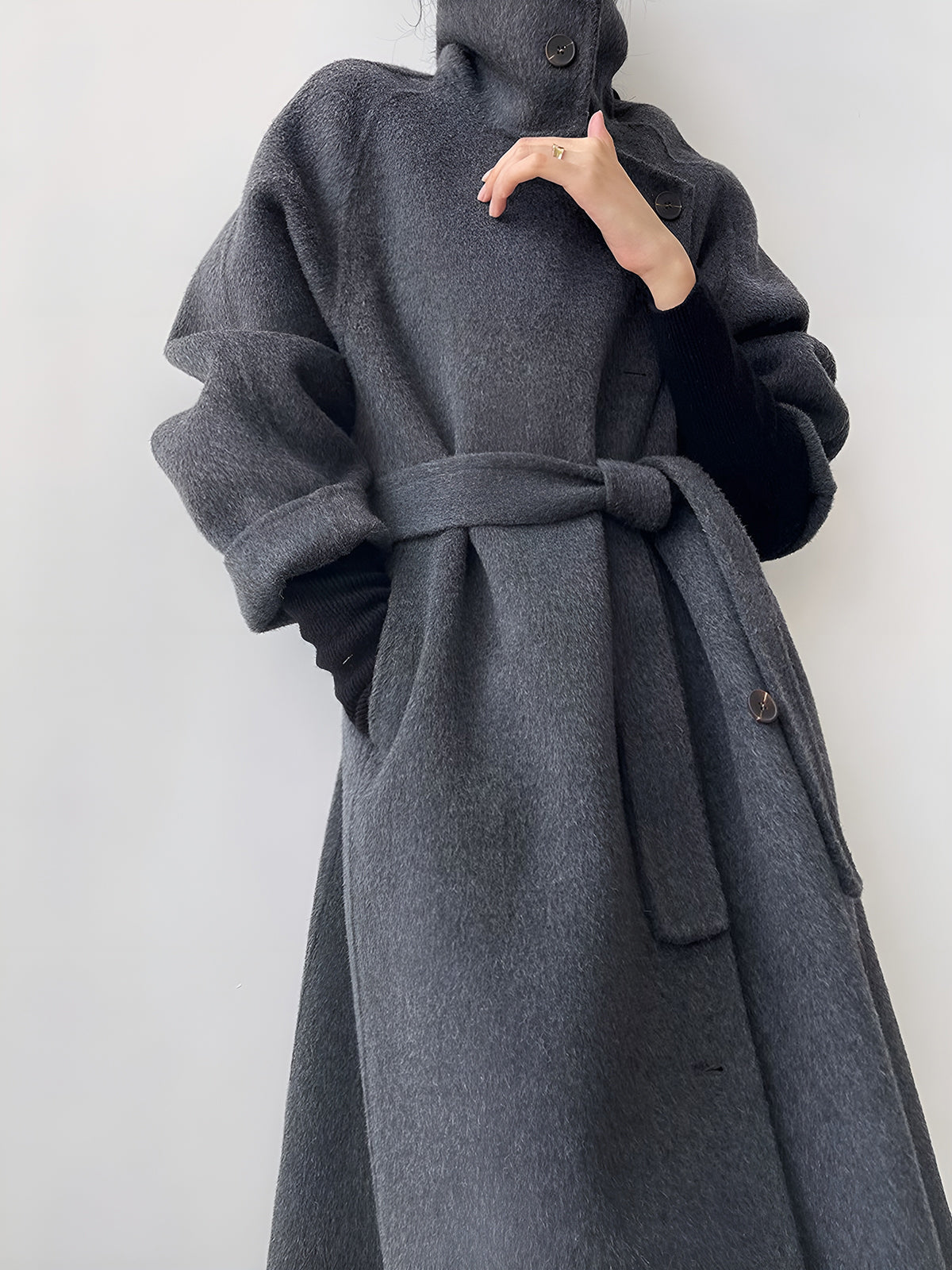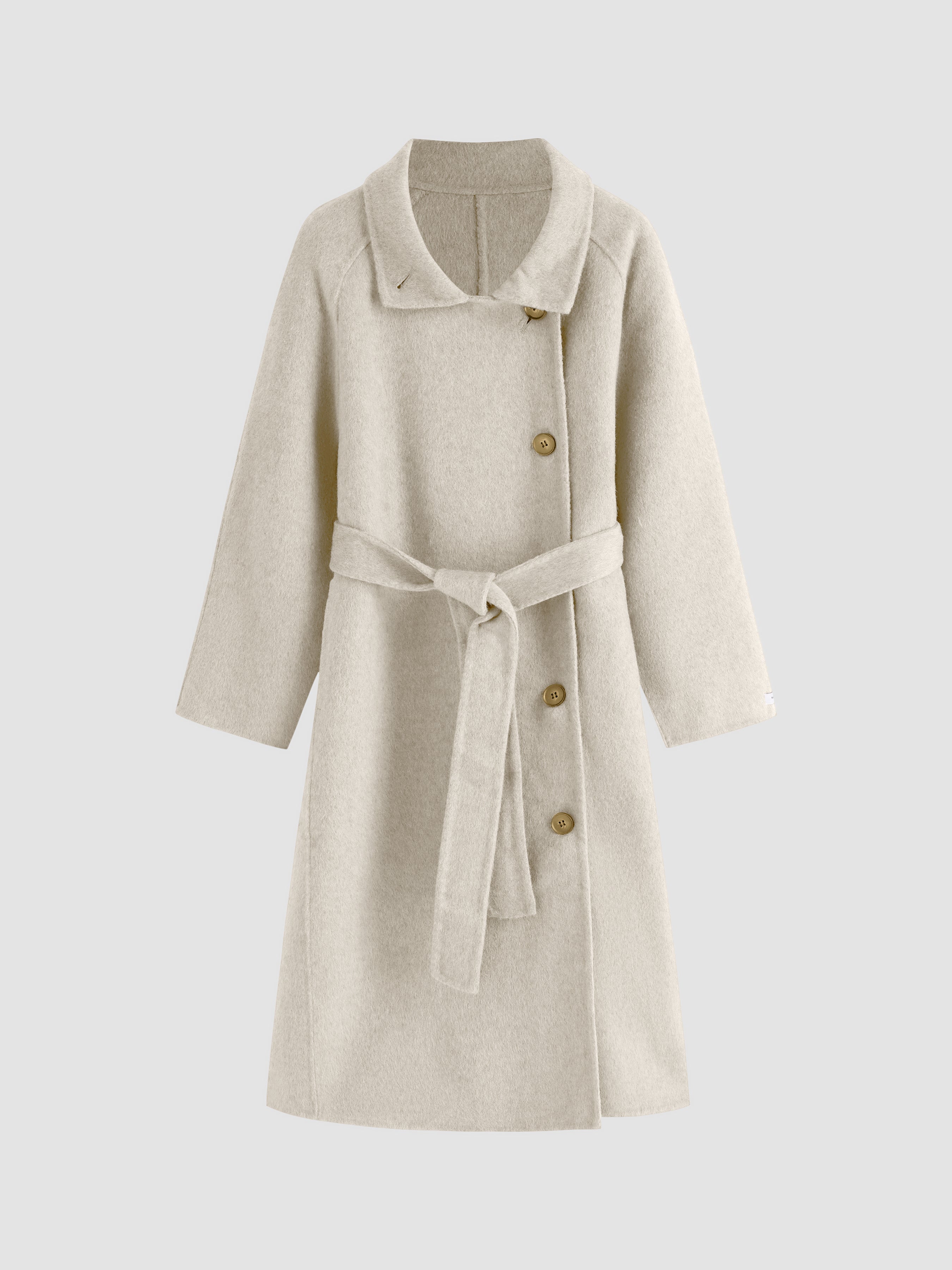 Tailored Collar Buttons Long Coat with Adjustable Belt