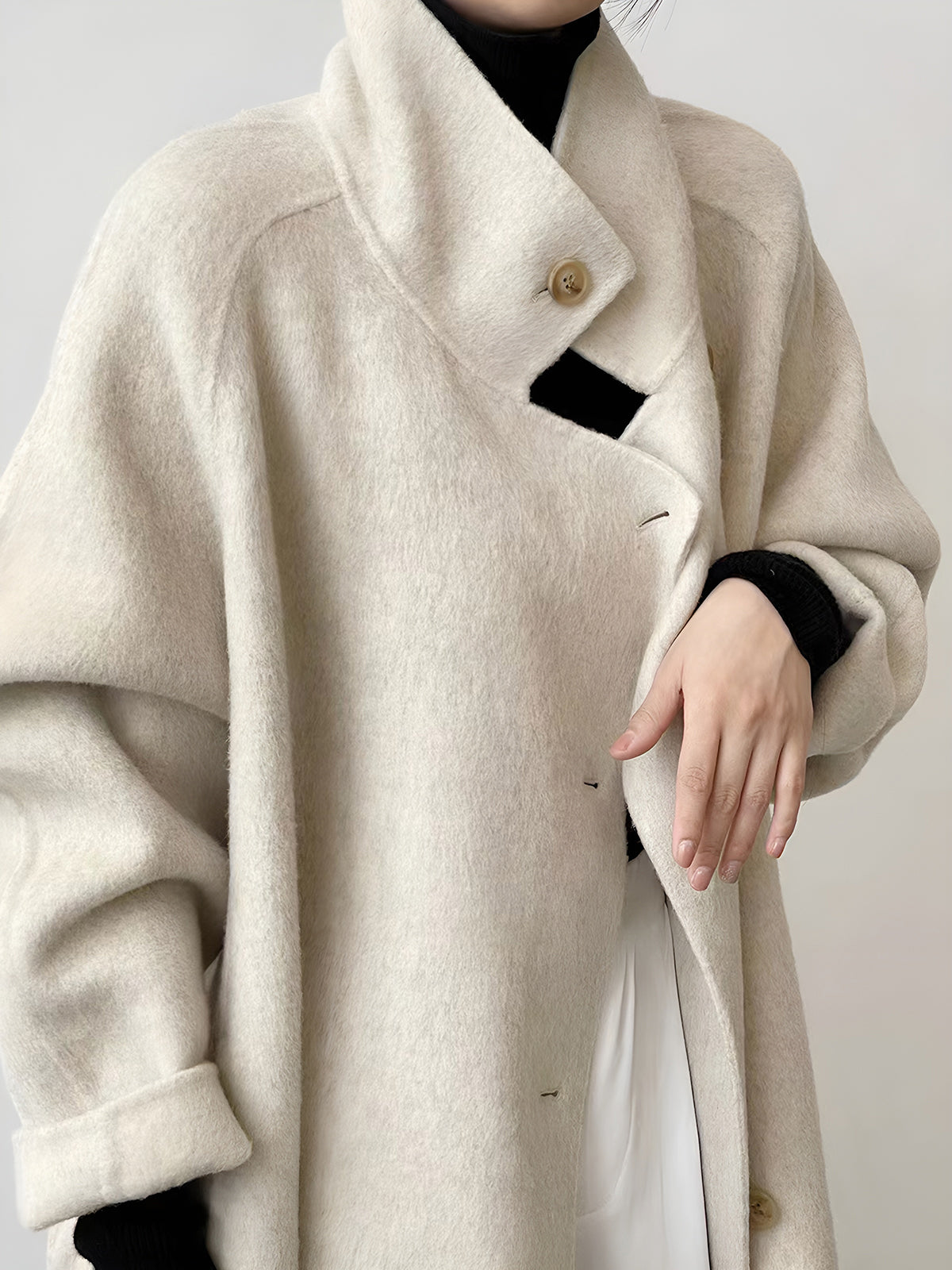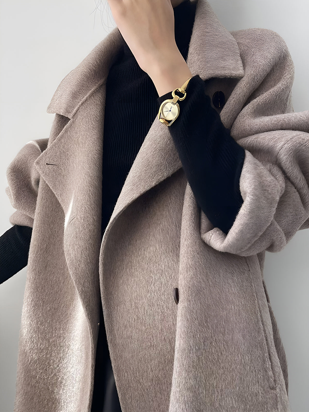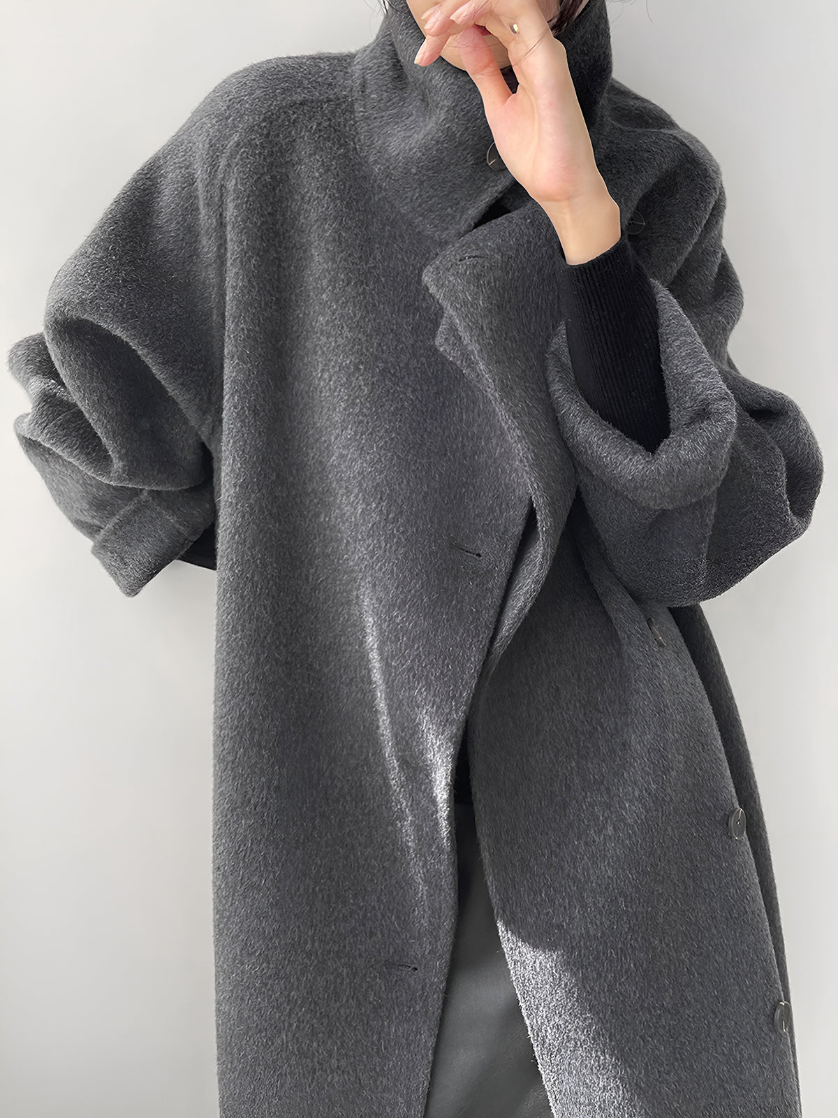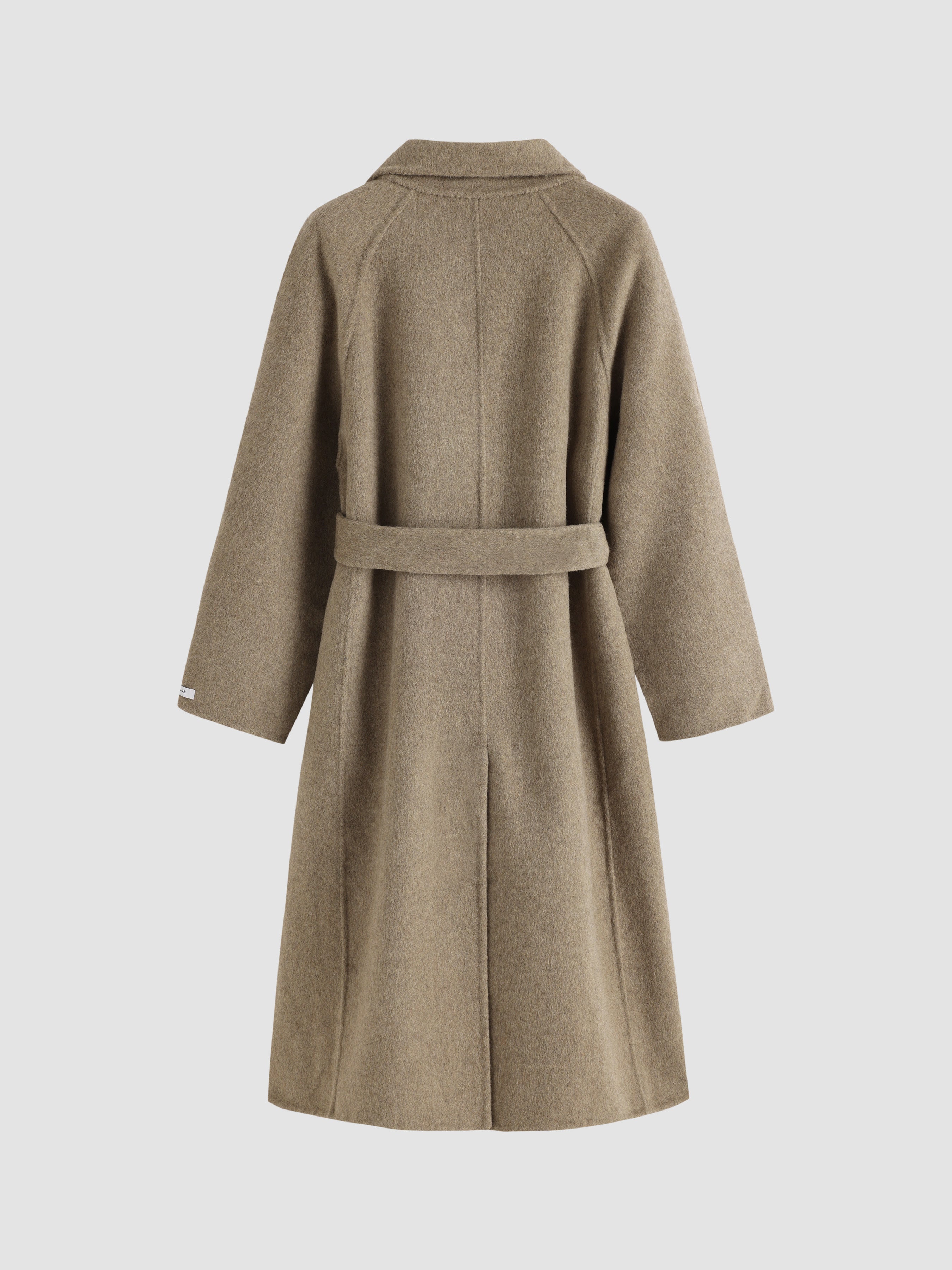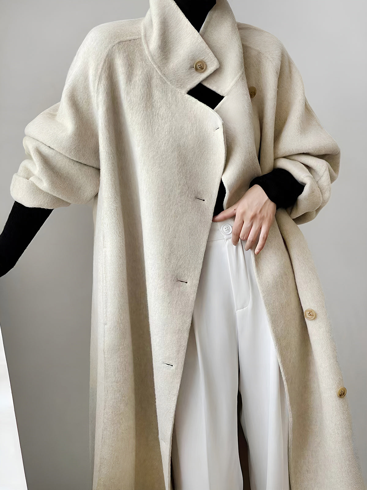 Tailored Collar Buttons Long Coat with Adjustable Belt