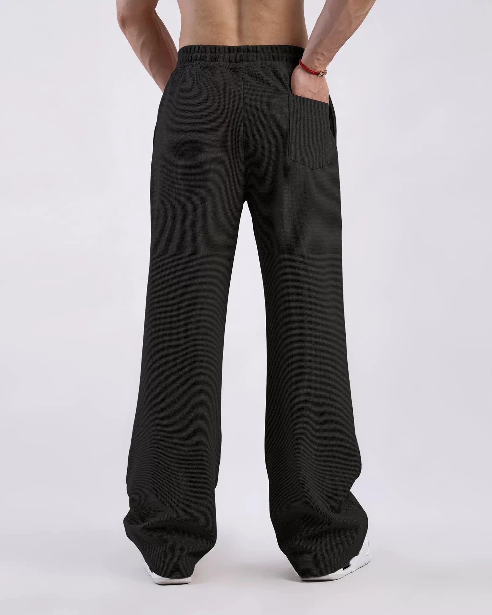 Hangout and workout in style with our new Waffle Textured Relaxed Fit Sweatpants. Subtle waffle grid knit pattern though out the pants that offers high-end fashion taste and visual interests. Straight leg and relaxed cut ensure free room for leg movements and avoid any discomfort. Stretchy fabrics blend and adjustable waist with drawstring make this pair of pants the ultimate combo of comfort and style.