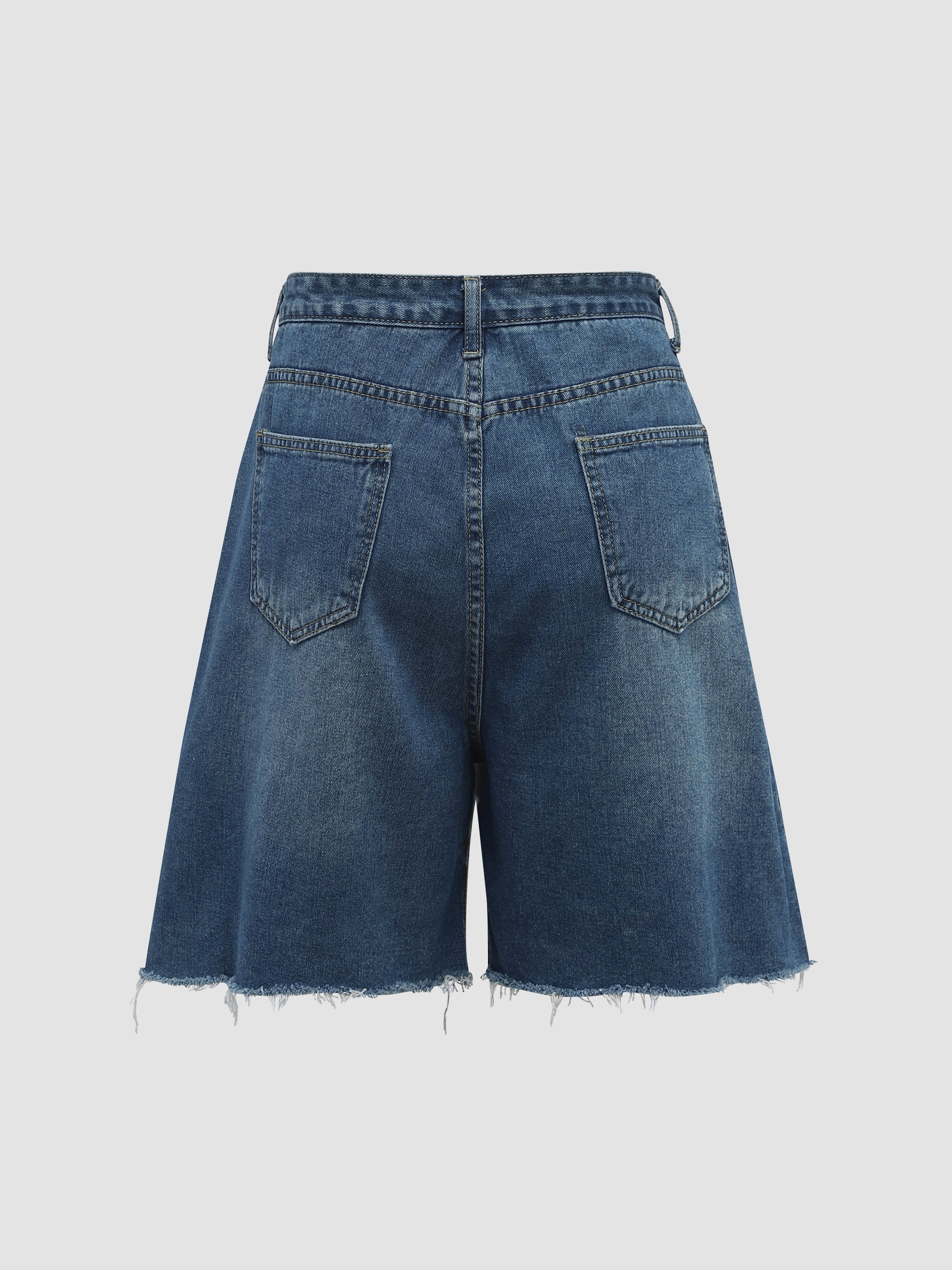 Women's Adjustable Waist Wide-Leg Denim Shorts