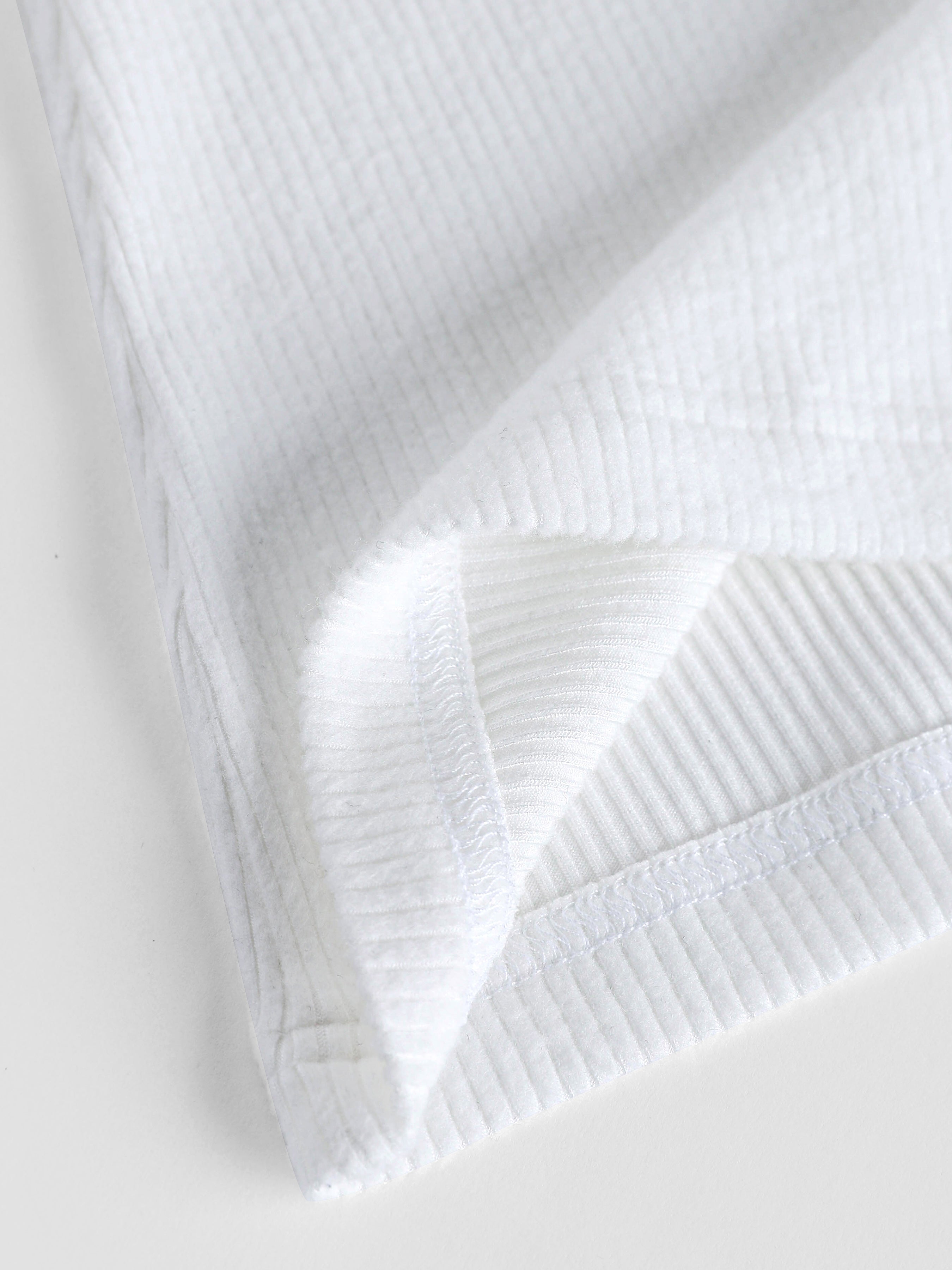 - Made from ribbed fabric, this t-shirt offers a textured appearance and a snug fit.